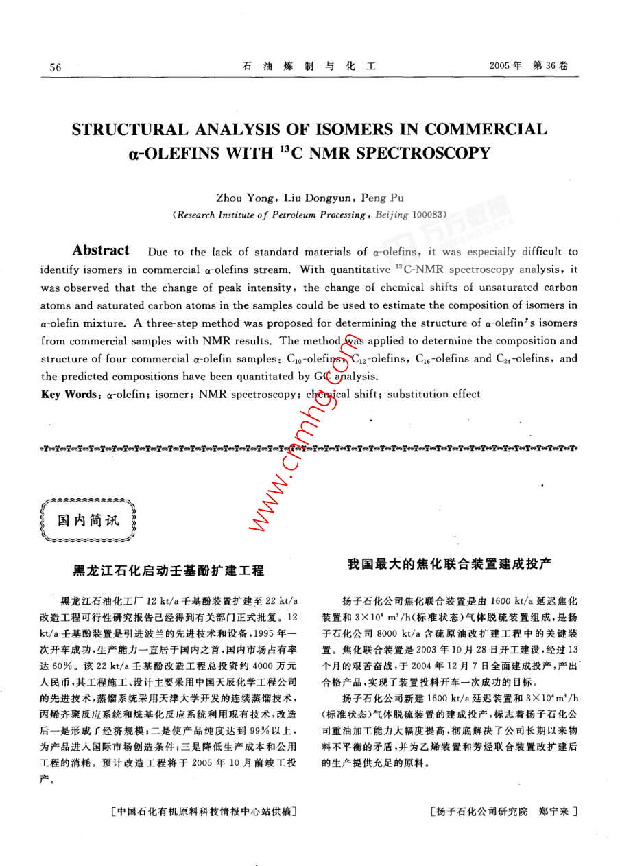 工業(yè)α-烯烴中異構體結構的核磁共振分析