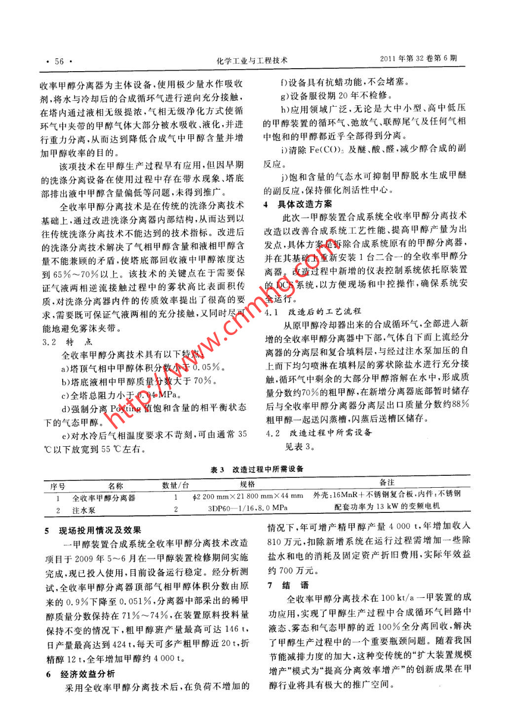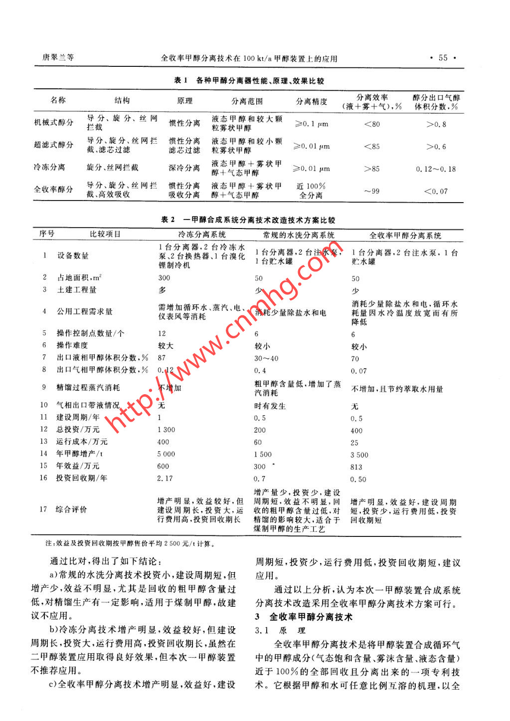 全收率甲醇分離技術(shù)在100kt/a甲醇裝置上的應(yīng)用