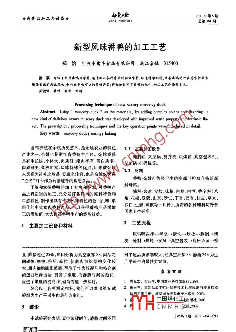 - 作者單位:寧波市禽豐食品有限公司