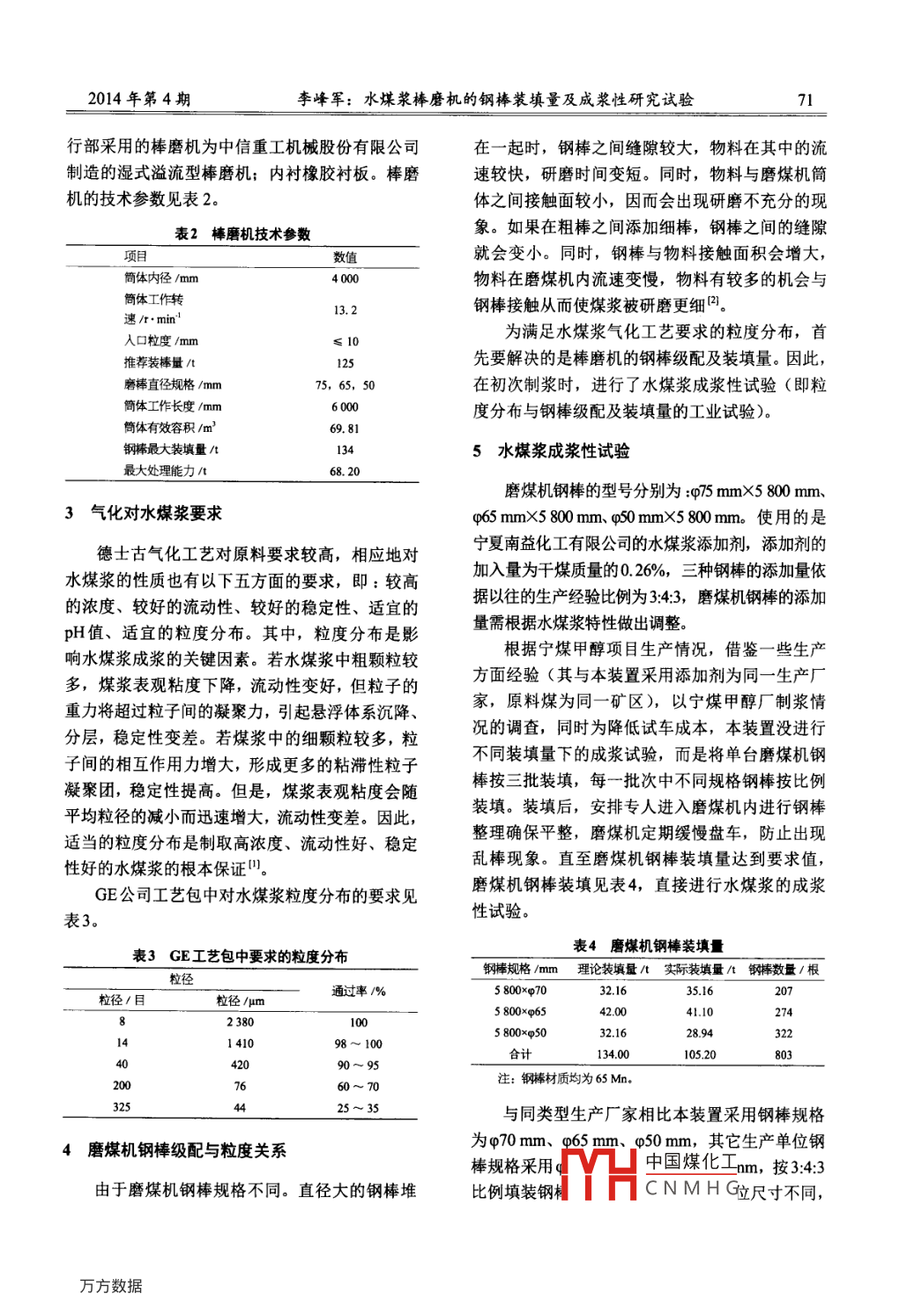 水煤漿棒磨機(jī)的鋼棒裝填量及成漿性研究試驗(yàn)
