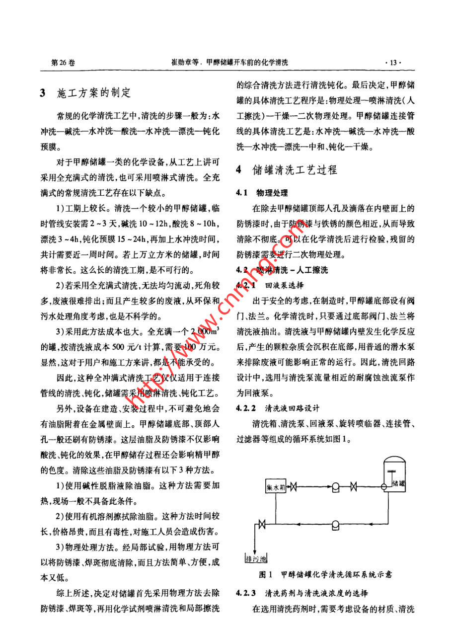 甲醇儲罐開車前的化學清洗
