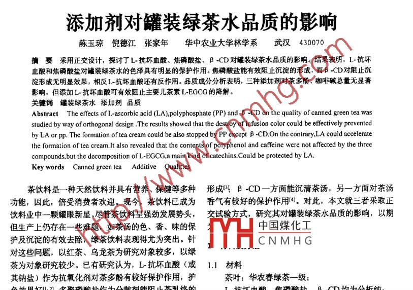 添加劑對(duì)罐裝綠茶水品質(zhì)的影響
