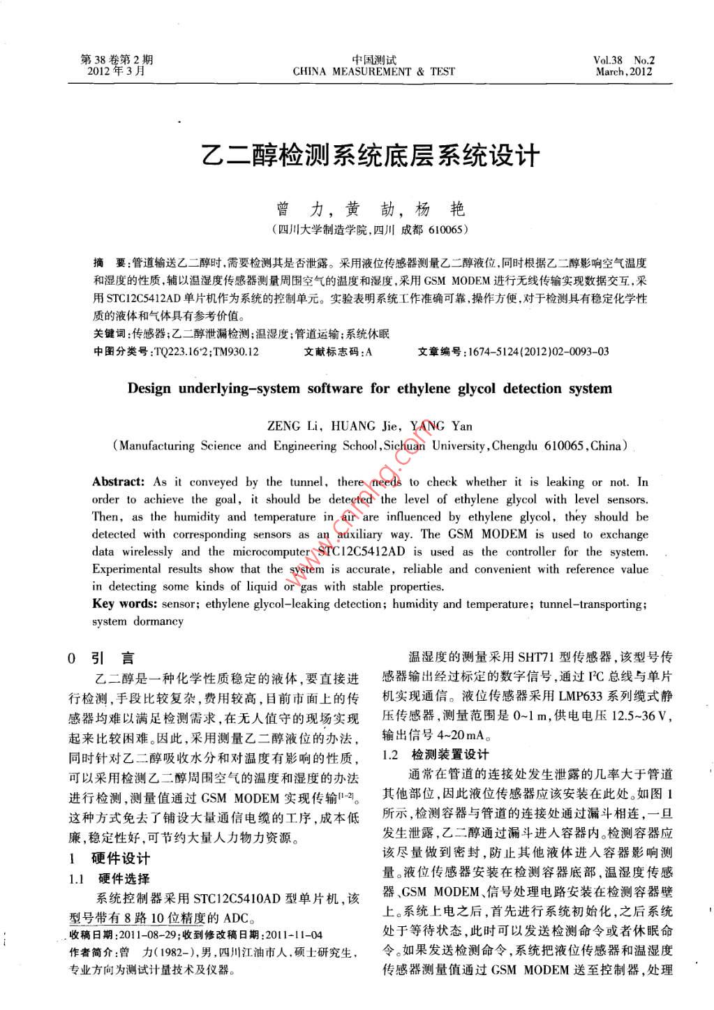 乙二醇檢測系統(tǒng)底層系統(tǒng)設(shè)計