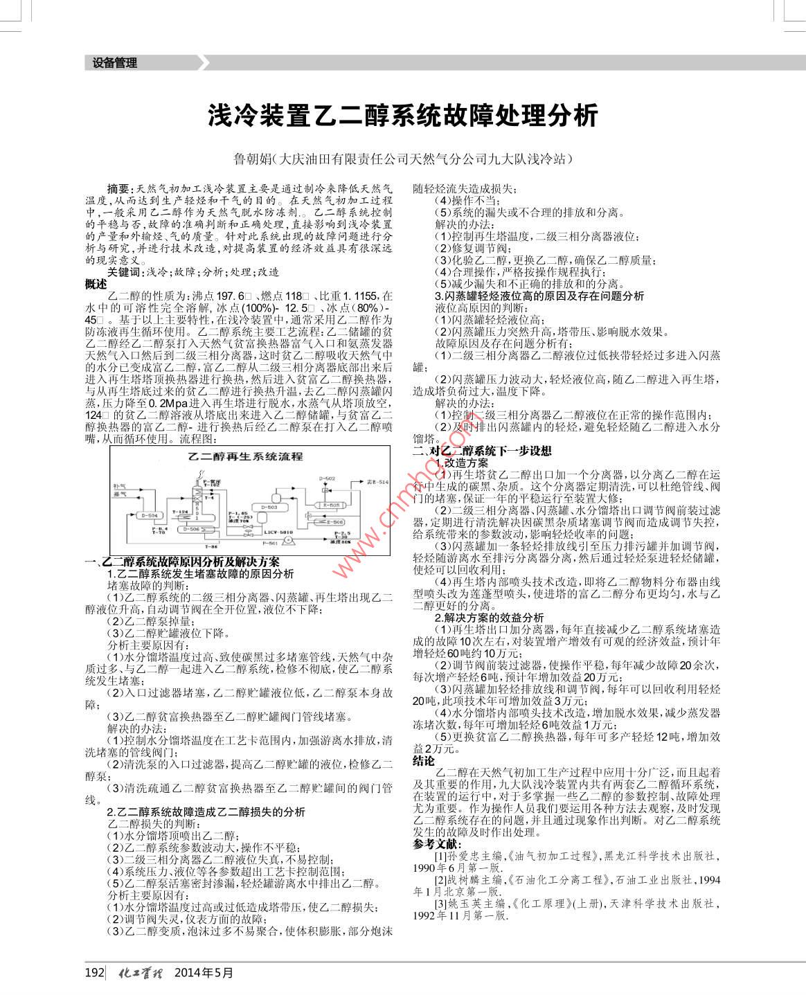 淺冷裝置乙二醇系統(tǒng)故障處理分析