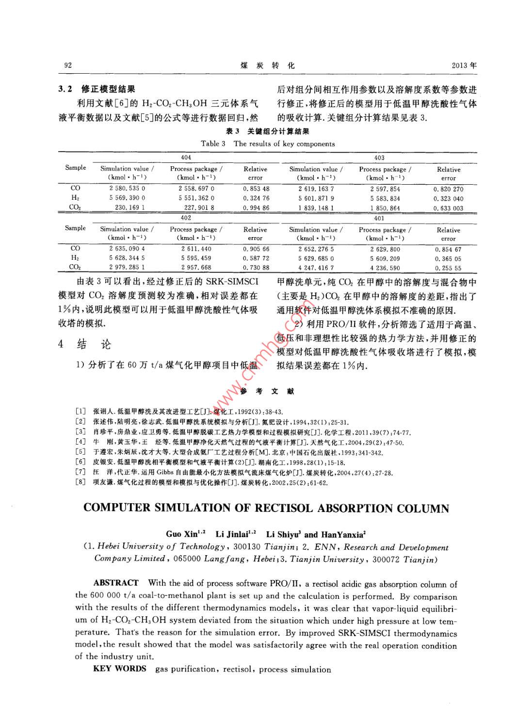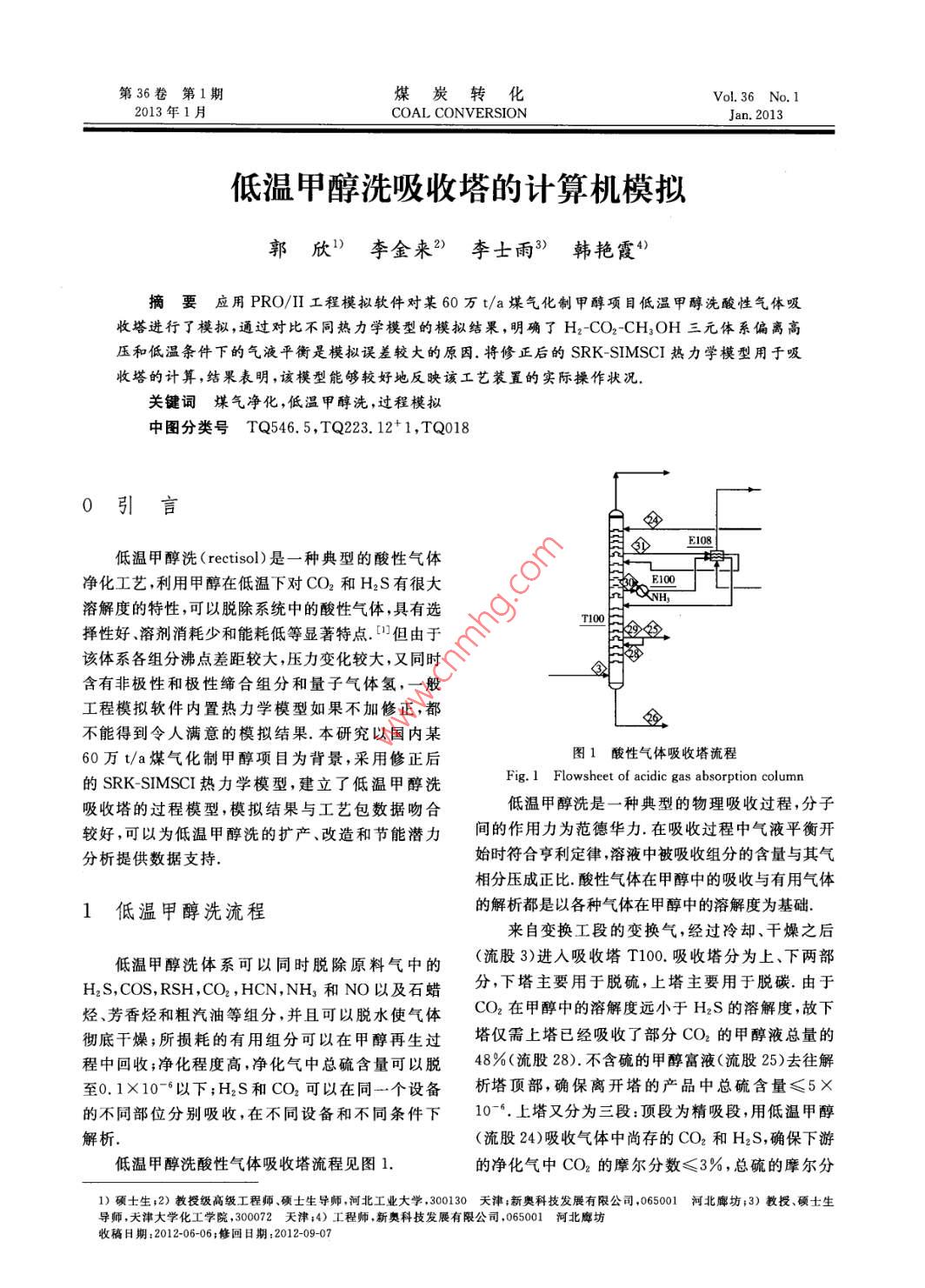 低溫甲醇洗吸收塔的計(jì)算機(jī)模擬