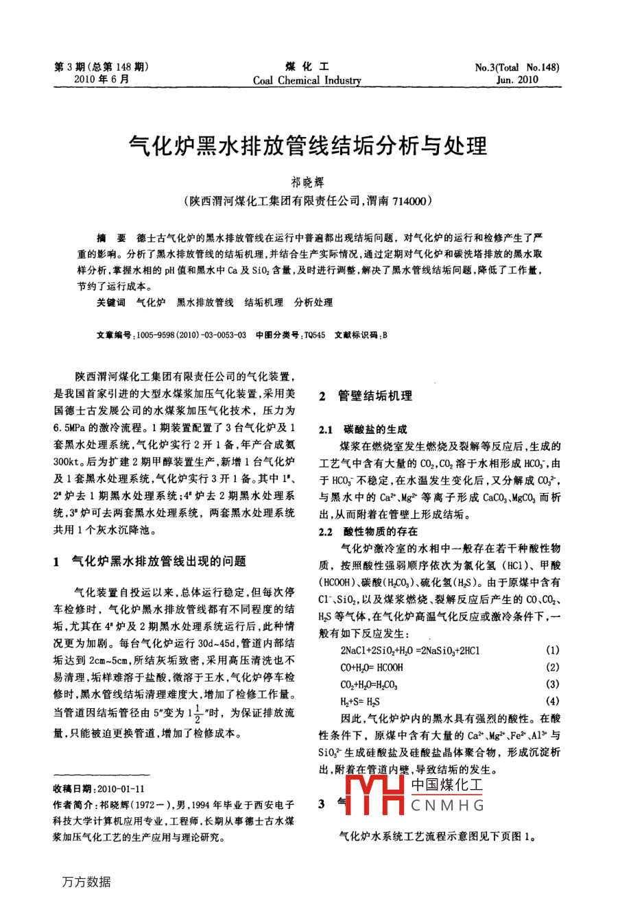 氣化爐黑水排放管線結(jié)垢分析與處理