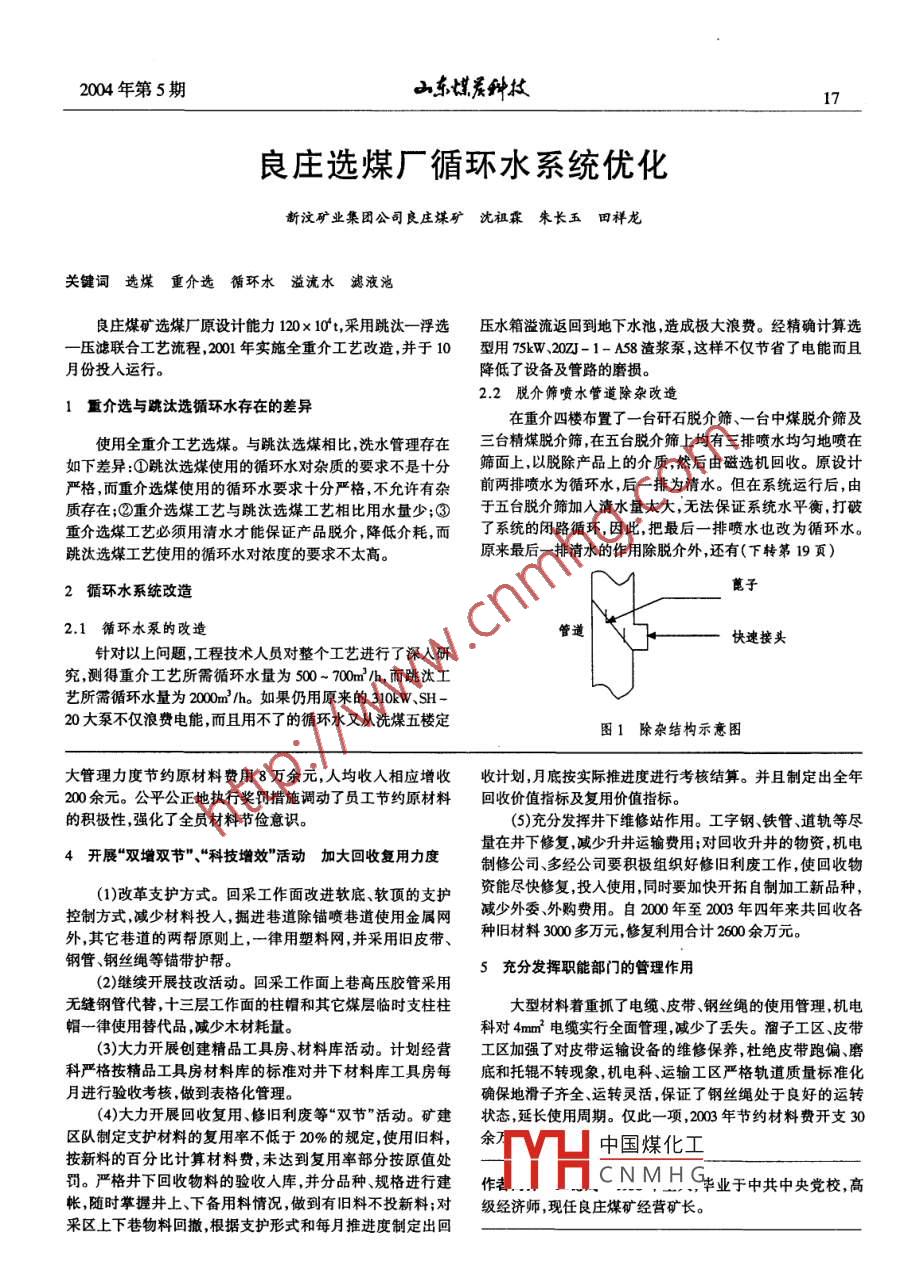 良莊選煤廠循環(huán)水系統(tǒng)優(yōu)化