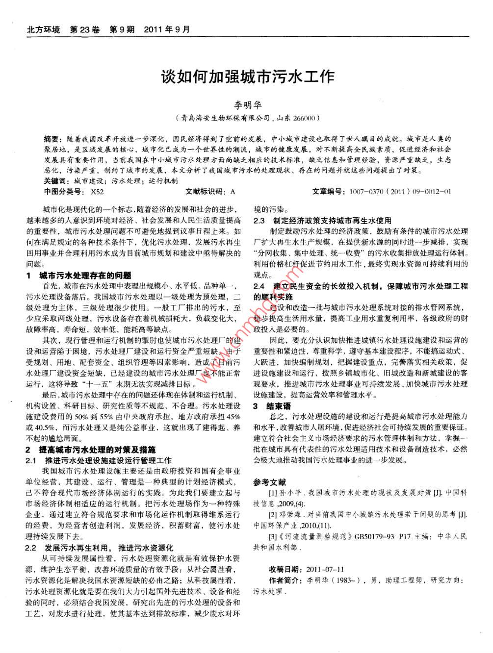 談如何加強(qiáng)城市污水工作