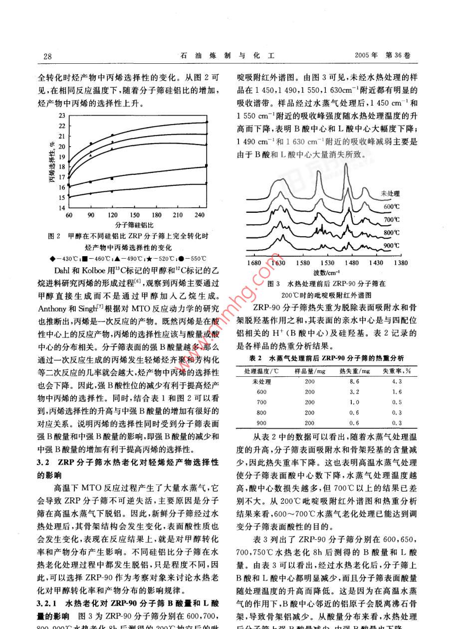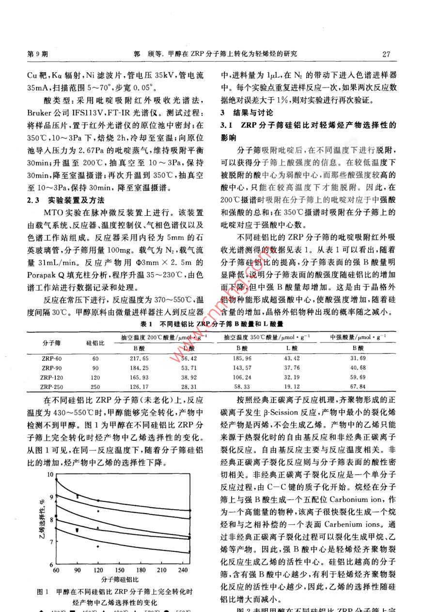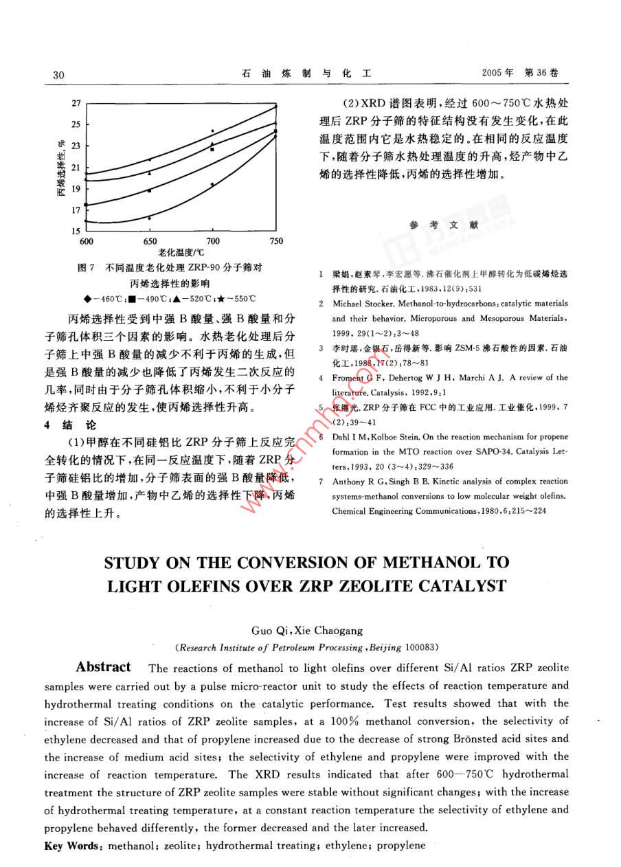甲醇在ZRP分子篩上轉(zhuǎn)化為輕烯烴的研究
