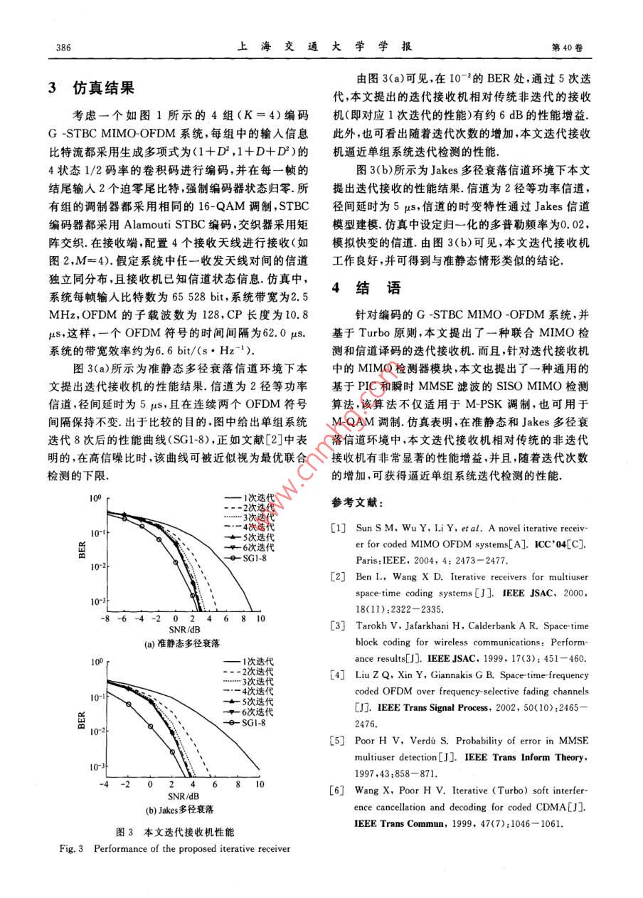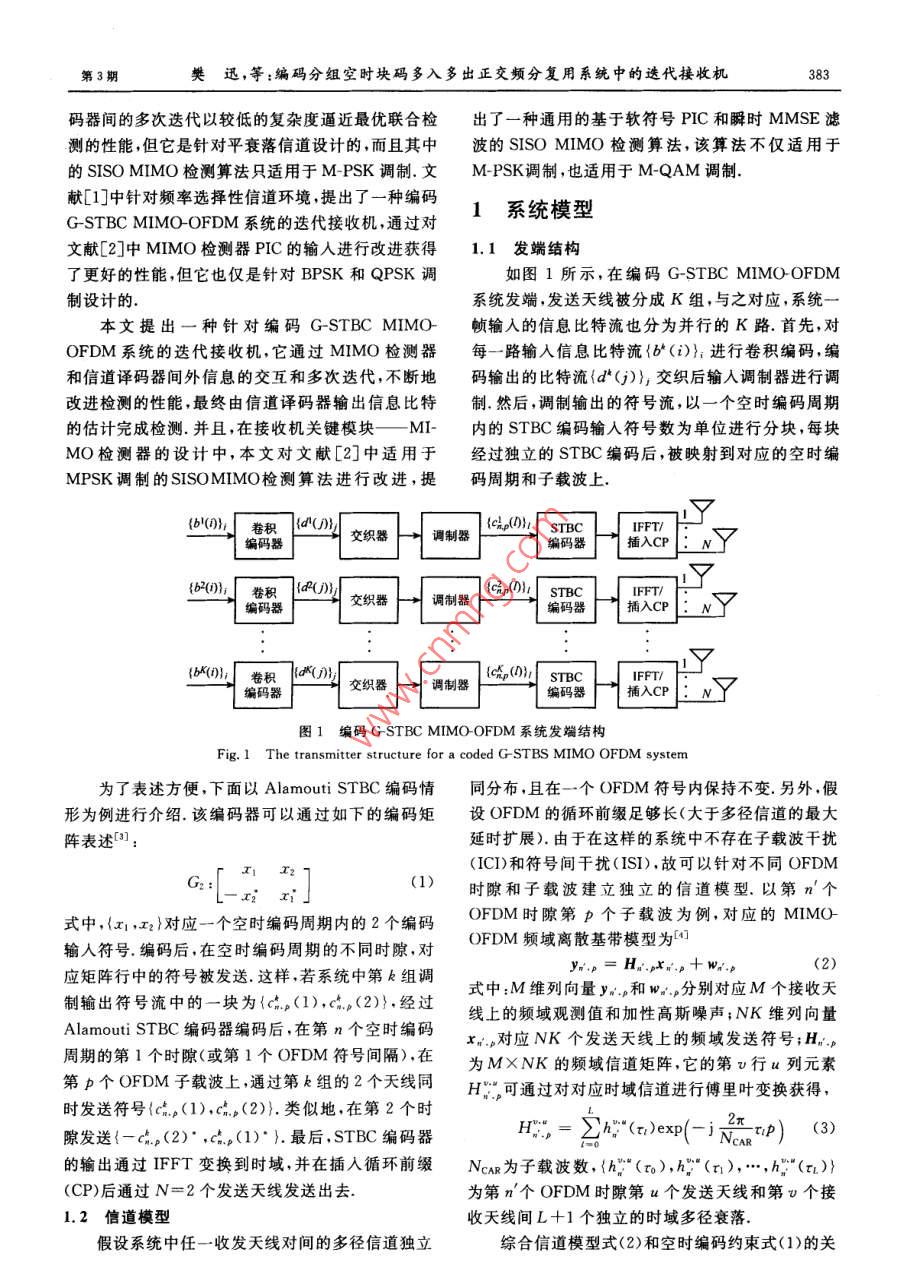 編碼分組空時塊碼多入多出正交頻分復(fù)用系統(tǒng)中的迭代接收機