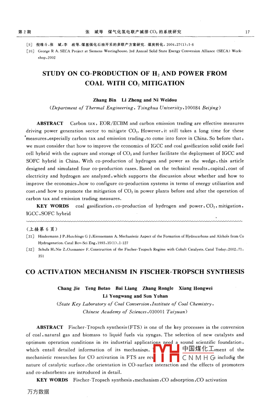 第28卷第2期煤炭轉(zhuǎn)化Vol.28 No.2005年4月COAL CONVERSIONApr. 2005煤氣化氫電聯(lián)產(chǎn)減排CO2的系統(tǒng)研究張斌})李政2)倪維斗3)摘要征收碳稅、強(qiáng)化石油開采以及開放二氧化碳減排貿(mào)易等措施可以促進(jìn)發(fā)電行業(yè)減排CO2.但是這些措施,尤其是碳稅和減排貿(mào)易,可能需要較長(zhǎng)的時(shí)間才能在中國(guó)施行.因此,必須考慮在這段時(shí)期內(nèi)如何改善減排CO2的IGCC和煤氣化固體氧化物燃料電池(SOFC)混合循環(huán)的經(jīng)濟(jì)性,進(jìn)而促進(jìn)IGCC和混合循環(huán)的發(fā)展.以煤氣化氫電聯(lián)產(chǎn)系統(tǒng)作為嘗試,設(shè)計(jì)、模擬了四種不同的聯(lián)產(chǎn)方案,通過對(duì)各方案的投資、發(fā)電和制氫成本的分析,就氫電聯(lián)產(chǎn)能否及如何改善經(jīng)濟(jì)性、如何從能量利用和成本兩方面配置聯(lián)產(chǎn)系統(tǒng)、以及實(shí)施碳稅等措施前后如何促進(jìn)發(fā)電廠減排CO2等方面進(jìn)行了探討.關(guān)鍵詞煤氣化,氫電聯(lián)產(chǎn) ,二氧化碳,減排,IGCC,SOFC混合循環(huán)中圖分類號(hào)TQ544,TM661. 31氫電聯(lián)產(chǎn)減排CO2的方案0引言通過對(duì)常規(guī)火電廠和IGCC及煤氣化固體氧化1.1 IGCC 方案物燃料電池(SOFC)混合循環(huán)在減排CO2前后的技如第8頁圖1所示,IGCC方案考慮在用Selexol術(shù)經(jīng)濟(jì)性的探討,發(fā)現(xiàn)雖然減排CO2時(shí),IGCC和技術(shù)分離CO,之后,將一部分富氫燃?xì)庖胱儔何旌涎h(huán)的基本發(fā)電成本低于常規(guī)火電廠,但是要附制氫裝置,另-部分通人燃?xì)廨啓C(jī)做功發(fā)電.促進(jìn)發(fā)電行業(yè)減排CO2的實(shí)施,需要開放CO2減排同IGCC單產(chǎn)電力減排CO2系統(tǒng)相比,該系統(tǒng)貿(mào)易及碳稅政策的輔助,而這兩者可能需要較長(zhǎng)時(shí)空分、煤氣化和高溫煤氣凈化等系統(tǒng)的配置不變,而間的努力才能奏效.所以有必要探討在這兩種手段高溫水煤氣變換(HTS)人口溫度控制在340 C~實(shí)施前,IGCC和混合循環(huán)經(jīng)濟(jì)性的方案.由于多聯(lián)350 C之間,出高溫變換溫度在400 C左右,人低溫產(chǎn)可以改善IGCC的經(jīng)濟(jì)性田,而且IGCC和煤氣變換(LTS)溫度在220 C左右.變換所需的水蒸氣/化-SOFC混合循環(huán)減排CO2的流程均存在CO2分CO比例保持不變,仍為1.5,需要從汽輪機(jī)中抽汽,離制富氫合成氣這一-環(huán)節(jié).因此,考慮聯(lián)產(chǎn)市場(chǎng)價(jià)格此時(shí)高溫變換人爐汽氣比約為1,低溫變換人口降較高的氫氣似乎是一一個(gè)可行的方向;另外,以煤為原至0.27左右.水煤氣變換前后回收的顯熱用于產(chǎn)生料聯(lián)產(chǎn)氫氣和電力同時(shí)臧排CO2也是美國(guó)Future12.5 MPa的高壓飽和蒸汽,該蒸汽被透平煙氣過Gen計(jì)劃的主要內(nèi)容. [l]本文將就IGCC及混合循熱后進(jìn)入高壓蒸汽輪機(jī)做功;CO2分離設(shè)備入口混環(huán)氫電聯(lián)產(chǎn)減排CO2的各種方案進(jìn)行分析:1)考察.合氣中CO2分壓約1. 12 MPa,仍采用物理溶劑法,氫電聯(lián)產(chǎn)能否及如何改善減排COz時(shí)的IGCC和混此處CO2回收率設(shè)為95%.回收的CO2量約308合循環(huán)的經(jīng)濟(jì)性;2)從能量利用效率最高和發(fā)電成t/h,壓力0. 2 MPa左右,用三級(jí)間冷壓縮機(jī)升壓至本(或制氫成本)最低的角度,如何配置各氫電聯(lián)產(chǎn)8MPa,冷凝后仍用泵升壓至20MPa,整個(gè)壓縮過方案的參數(shù);3)比較各方案的優(yōu)缺點(diǎn),針對(duì)促進(jìn)發(fā)程單中國(guó)煤化工)/kg CO:;部分富氫電廠減排CO,,描述一下技術(shù)發(fā)展路線及前景(碳稅合成MH)進(jìn)人變壓吸附的實(shí)施前后).(PSCNMH.G這部分合成氣的比*國(guó)家自然科學(xué)基金資助項(xiàng)目(90210032).1)博士生;2)教授、博士生導(dǎo)師:3)中國(guó)工程院院士、教授、博士生導(dǎo)師,清華大學(xué)熱能工程系.00084北京收稿日期:2004-11-29;修回日期:2005-01-108煤炭轉(zhuǎn)化2005年例(變化范圍0~1)來控制系統(tǒng)的氫、電產(chǎn)量比,制尾氣壓力跟人口原料氣壓力水平有關(guān),-般在0. 02得的氫氣(約2.7MPa)被兩級(jí)氫氣壓縮機(jī)間冷壓縮MPa~0.2 MPa左右.變壓吸附的尾氣經(jīng)壓縮預(yù)熱至15 MPa,壓縮過程單位耗功量為0.82 (kW●h)/后進(jìn)入燃?xì)廨啓C(jī)燃燒室 ,燃機(jī)系統(tǒng)根據(jù)需要選擇合kg H2;大型變壓吸附裝置一般都采用多床流程(10適的型號(hào);余熱鍋爐僅采用單壓設(shè)計(jì),產(chǎn)生中壓過熱床到12床),氫氣純度可達(dá)5 N. [4}我國(guó)西南化工研蒸汽,蒸汽參數(shù)為3MPa/360C.排放的煙氣溫度究設(shè)計(jì)院51成功設(shè)計(jì)了制氫能力5萬m*/h以上的控制在120 C~150 C之間.圖1中標(biāo)出的各主要PSA裝置,氫氣回收率大于95%. PSA實(shí)際運(yùn)行數(shù)物流的成分及流量見表1(powersplitratio是指合據(jù)表明[6],產(chǎn)品氫氣的壓力和原料氣壓力相差不大,成氣或富氫燃?xì)夥峙溆糜诎l(fā)電的比例,下同).steanlextractionGias colig ,2(JCo, compes 20MPa廣十 and cleaningSteamL and condens LiquidCO2,OxygenFluegesAi> ASUCombinedSAH 1SMPacyclecompress HydrogenPower圖1 IGCC 氫電聯(lián)產(chǎn)減排CO2Fig. 1 IGCC case for H2 and electricity coproduction with COz recovery表1 IGCC 氫電聯(lián)產(chǎn)方案主要物流(合成氣發(fā)電比例50%)Table 1 Main streams in IGCC case (50% power split ratio )Volumetric concentration/%No