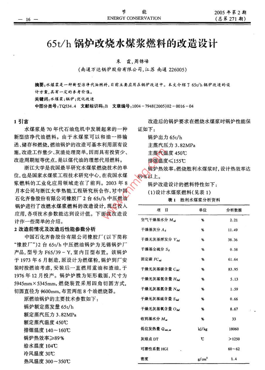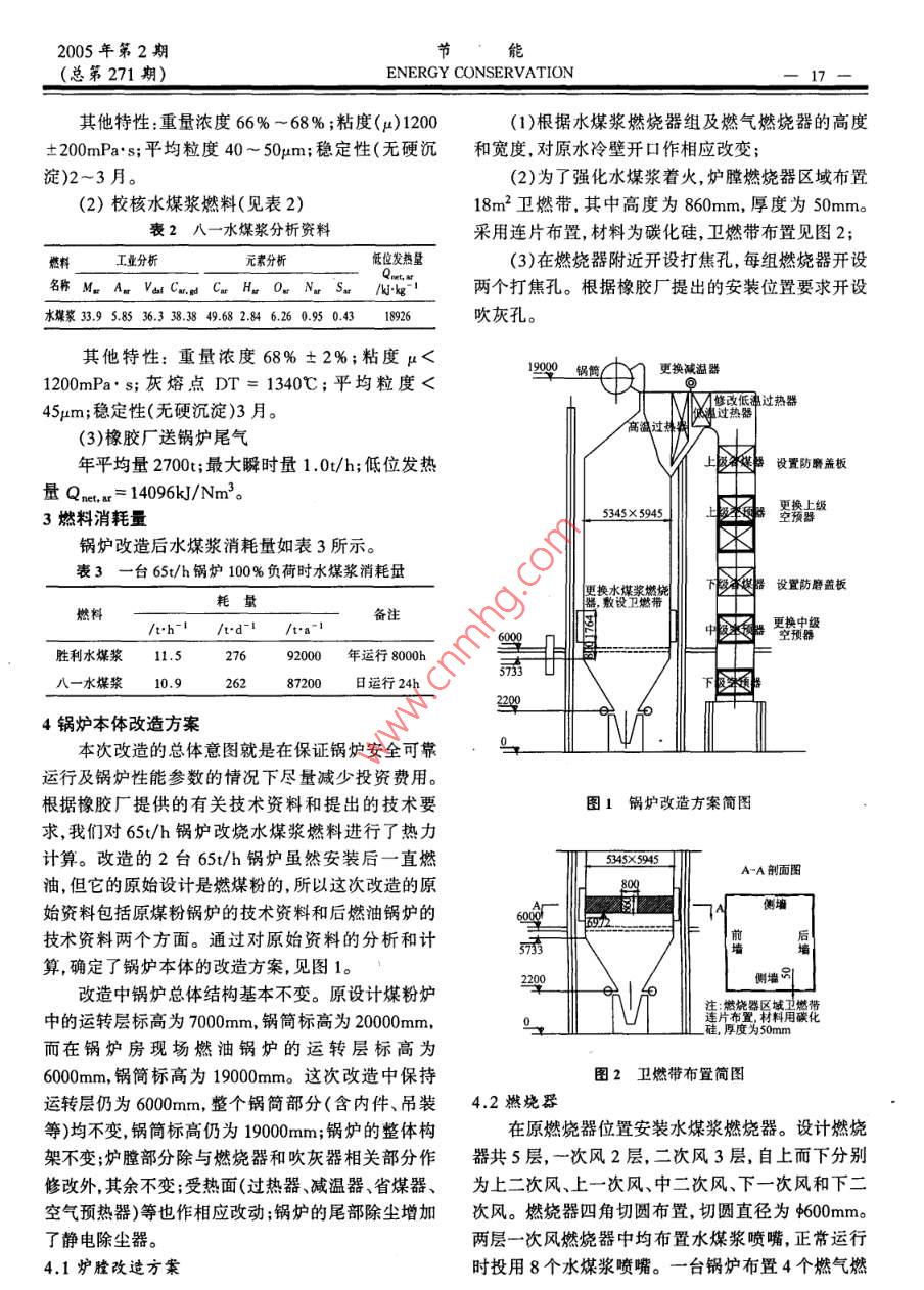65t/h鍋爐改燒水煤漿燃料的改造設(shè)計(jì)
