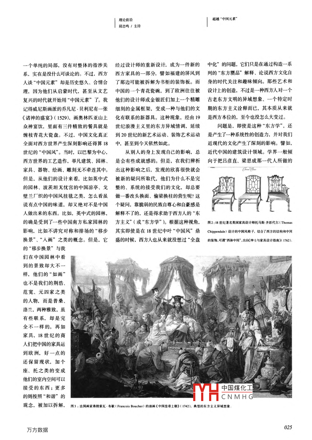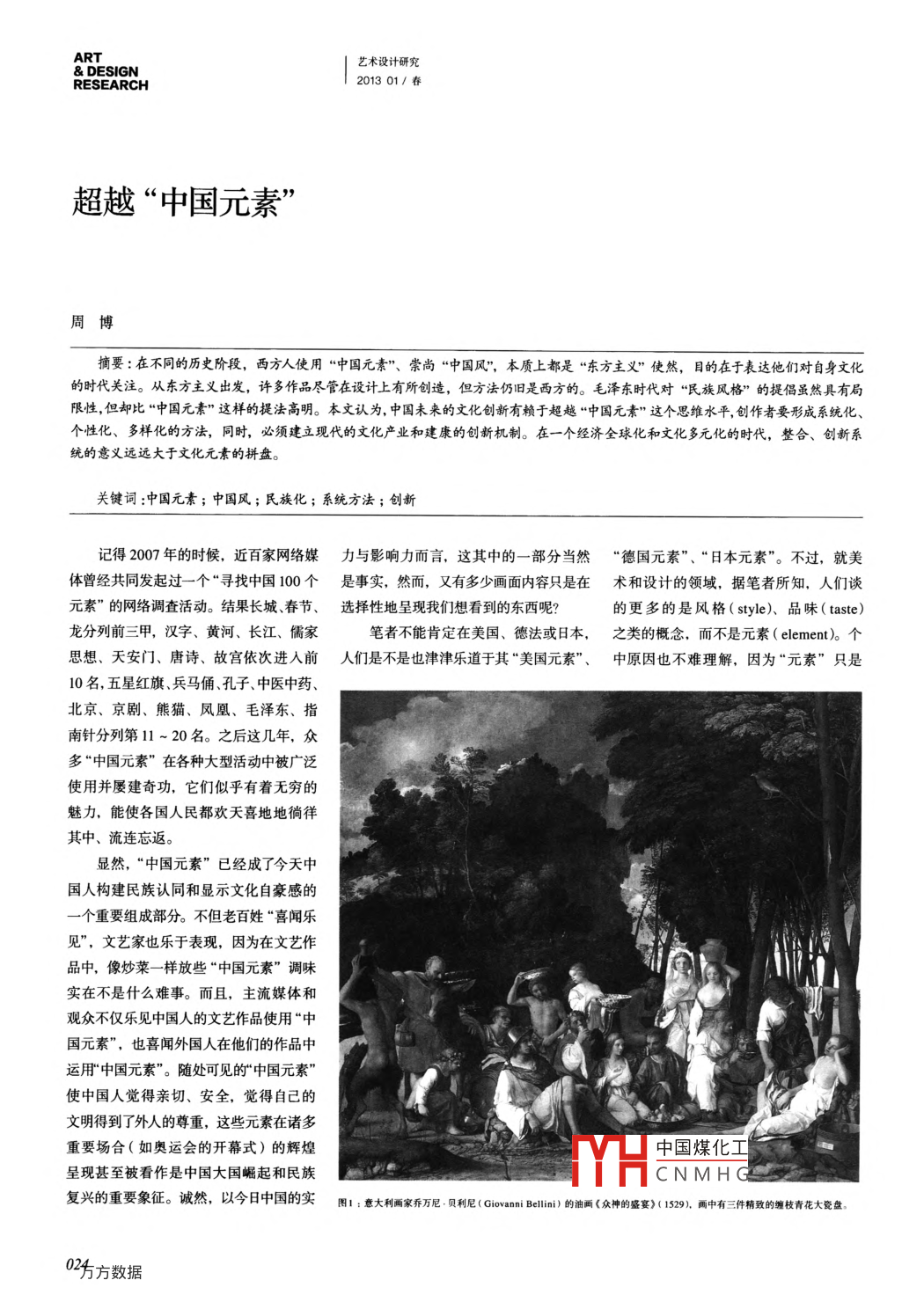 ARTDESIGN藝術(shù)設(shè)計(jì)研究RESEARCH201301/春超越“中國(guó)元素”周博摘要:在不同的歷史階段,西方人使用“中國(guó)元素”、崇尚“中國(guó)風(fēng)”,本質(zhì)上都是“東方主義”使然,目的在于表達(dá)他們對(duì)自身文化的時(shí)代關(guān)注。從東方主義出發(fā),許多作品盡管在設(shè)計(jì)上有所創(chuàng)造,但方法仍舊是西方的。毛澤東時(shí)代對(duì)哏民族風(fēng)格”的提倡雖然具有局限性,但卻比“中國(guó)元素”這樣的提法高明。本文認(rèn)為,中囯未來(lái)的文化創(chuàng)新有賴于超越“中國(guó)元素”這個(gè)思維水平,創(chuàng)作者要形成系統(tǒng)化個(gè)性化、多樣化的方法,同時(shí),必須建立現(xiàn)代的文化產(chǎn)業(yè)和建康的創(chuàng)新機(jī)制。在一個(gè)經(jīng)濟(jì)全球化和文化多元化的時(shí)代,整合、創(chuàng)新系統(tǒng)的意義遠(yuǎn)遠(yuǎn)大于文化元素的拼盤。關(guān)鍵詞:中國(guó)元素;中國(guó)風(fēng);民族化;系統(tǒng)方法;創(chuàng)新記得2007年的時(shí)候,近百家網(wǎng)絡(luò)媒力與影響力而言,這其中的一部分當(dāng)然“德國(guó)元素”、“日本元素”。不過(guò),就美體曾經(jīng)共同發(fā)起過(guò)一個(gè)“尋找中國(guó)100個(gè)是事實(shí),然而,又有多少畫面內(nèi)容只是在術(shù)和設(shè)計(jì)的領(lǐng)域,據(jù)筆者所知,人們談元素”的網(wǎng)絡(luò)調(diào)查活動(dòng)。結(jié)果長(zhǎng)城、春節(jié)、選擇性地呈現(xiàn)我們想看到的東西呢?的更多的是風(fēng)格(syle)、品味( taste)龍分列前三甲,漢字、黃河、長(zhǎng)江、儒家筆者不能肯定在美國(guó)、德法或日本,之類的概念,而不是元素( element)個(gè)思想、天安門、唐詩(shī)、故宮依次進(jìn)入前人們是不是也津津樂道于其“美國(guó)元素”、中原因也不難理解,因?yàn)椤霸亍敝皇?0名,五星紅旗、兵馬俑、孔子、中醫(yī)中藥北京、京劇、熊貓、風(fēng)凰、毛澤東、指南針分列第11-20名。之后這幾年,眾多“中國(guó)元素”在各種大型活動(dòng)中被廣泛使用并屢建奇功,它們似乎有著無(wú)窮的魅力,能使各國(guó)人民都?xì)g天喜地地徜徉其中、流連忘返。顯然,“中國(guó)元素”已經(jīng)成了今天中國(guó)人構(gòu)建民族認(rèn)同和顯示文化自豪感的個(gè)重要組成部分。不但老百姓“喜聞樂見”,文藝家也樂于表現(xiàn),因?yàn)樵谖乃囎髌分?像炒菜一樣放些“中國(guó)元素”調(diào)味實(shí)在不是什么難事。而且,主流媒體和觀眾不僅樂見中國(guó)人的文藝作品使用“中國(guó)元素”,也喜聞外國(guó)人在他們的作品中運(yùn)用“中國(guó)元素”。隨處可見的“中國(guó)元素使中國(guó)人覺得親切、安全,覺得自己的文明得到了外人的尊重,這些元素在諸多重要場(chǎng)合(如奧運(yùn)會(huì)的開幕式)的輝煌中國(guó)煤化工呈現(xiàn)甚至被看作是中國(guó)大國(guó)崛起和民族CNMHGS復(fù)興的重要象征。誠(chéng)然,以今日中國(guó)的實(shí)圖1:意大利畫家喬萬(wàn)尼,貝利尼(Cmli)的油畫《眾神的盛宴)(15.畫中有三件精致的枝青花大菱盤02方數(shù)據(jù)理論前沿超越“中國(guó)元素邱忠鳴/主持個(gè)單純的局部,沒有對(duì)整體的指涉關(guān)經(jīng)過(guò)設(shè)計(jì)師的重新設(shè)計(jì),成為一件新的中化”的問(wèn)題,它們只是在通過(guò)構(gòu)造一系系,實(shí)在是沒什么可談?wù)摰摹2贿^(guò),西方西方家具的一部分,譬如福建的屏風(fēng)到列的“東方贗品”解釋、論說(shuō)西方文化自人談“中國(guó)元素”卻是歷史悠久、合情合了那邊可能被拆解為書柜的裝飾板。而身的時(shí)代關(guān)注和趣味傾向。那些藝術(shù)和理,因?yàn)樗麄儚膯⒚蓵r(shí)代,甚至從文藝中國(guó)的一個(gè)青花瓷碗,到了歐洲往往被設(shè)計(jì)上的創(chuàng)造,不過(guò)是一種西方人對(duì)一個(gè)復(fù)興的時(shí)代就開始用“中國(guó)元素”了。我他們的設(shè)計(jì)師或金銀匠們加上一個(gè)精雕古老東方文明的異域想象、一個(gè)特定時(shí)記得威尼斯畫派的喬凡尼.貝利尼有一張細(xì)刻的金屬框架,變成一種與他們的文期的東方主義詮釋而已,其本質(zhì)從來(lái)就《諸神的盛宴》(1529),畫奧林匹亞山上化有聯(lián)系的新器具。這種現(xiàn)象,經(jīng)由19是西方本位的,至今也沒怎么大變過(guò)。眾神宴飲,里面有三件精致的餐具就是世紀(jì)浪漫主義里的東方異域情調(diào),延續(xù)問(wèn)題是,即使是這種“東方學(xué)”,還纏枝青花大瓷盤。不過(guò),中國(guó)文化真正到20世紀(jì)的新藝術(shù)運(yùn)動(dòng)、裝飾藝術(shù)運(yùn)動(dòng)是產(chǎn)生了一種系統(tǒng)性的創(chuàng)造力,并對(duì)我們?nèi)鎸?duì)西方世界產(chǎn)生深刻影響還得算18中,甚至到今天依然如此近現(xiàn)代的文化產(chǎn)生了深刻的影響。譬如,世紀(jì)的“中國(guó)風(fēng)”。當(dāng)時(shí),以巴黎為中心從別人的身上發(fā)現(xiàn)自己的影響,總近代中國(guó)的建筑設(shè)計(jì)領(lǐng)域。學(xué)界一般傾西方世界的工藝造作,舉凡建筑、園林、是會(huì)有些成就感的。但是,在我們辨析向于把呂彥直、梁思成那一代人所做的家具、器物、繪畫、雕刻無(wú)不牽連其中。出這種影響之后,發(fā)現(xiàn)的欣喜很快就會(hu