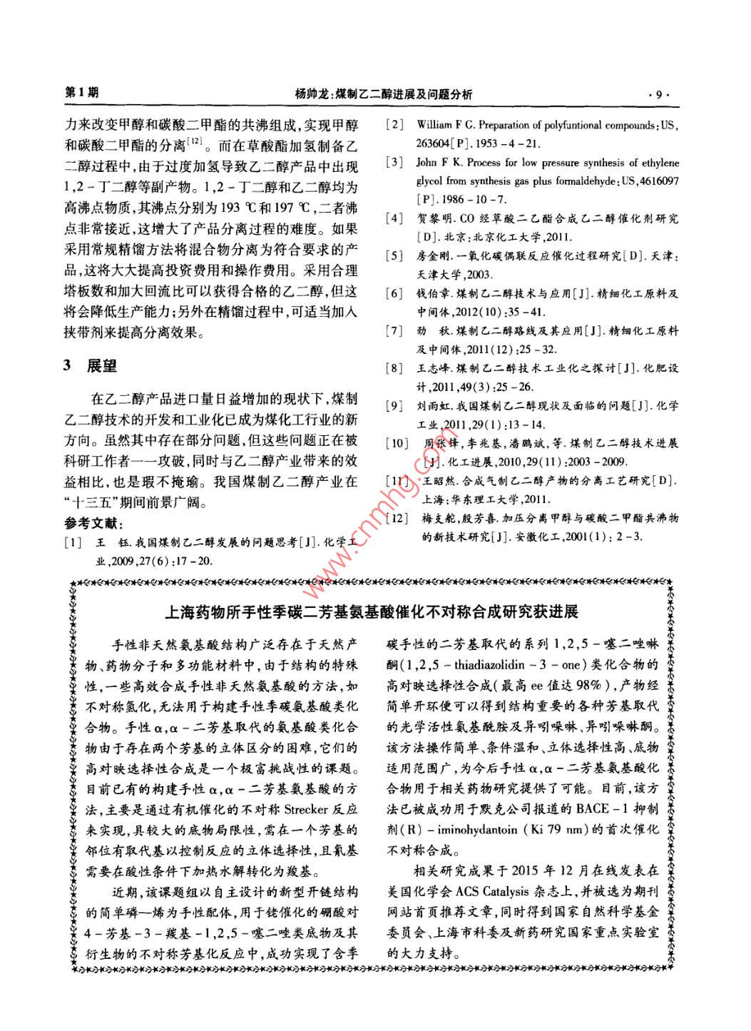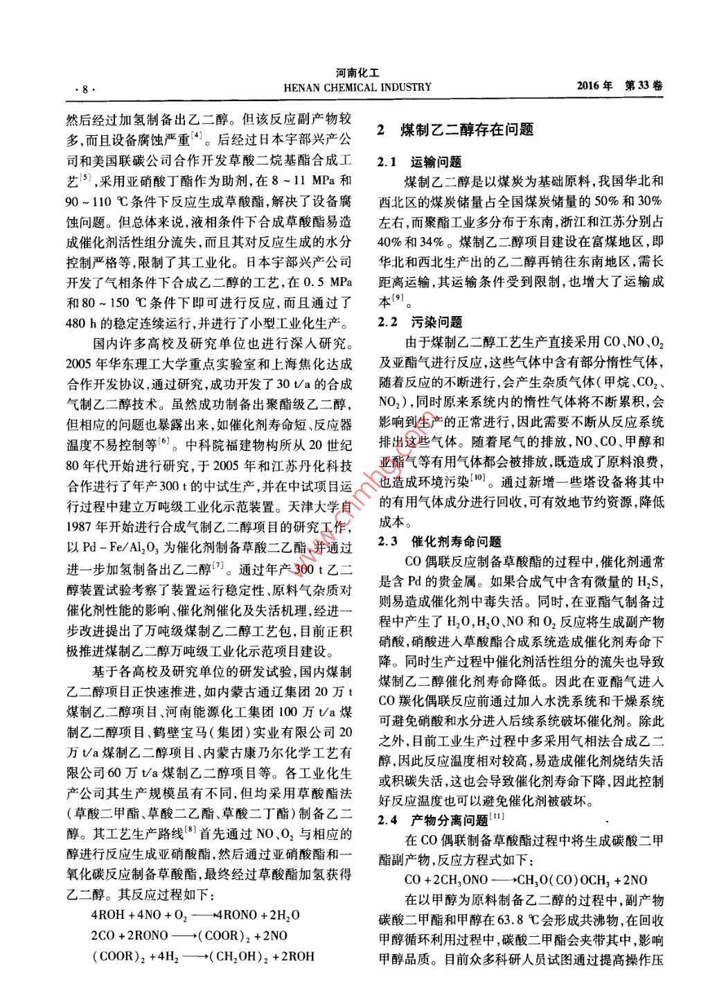 煤制乙二醇進展及問題分析