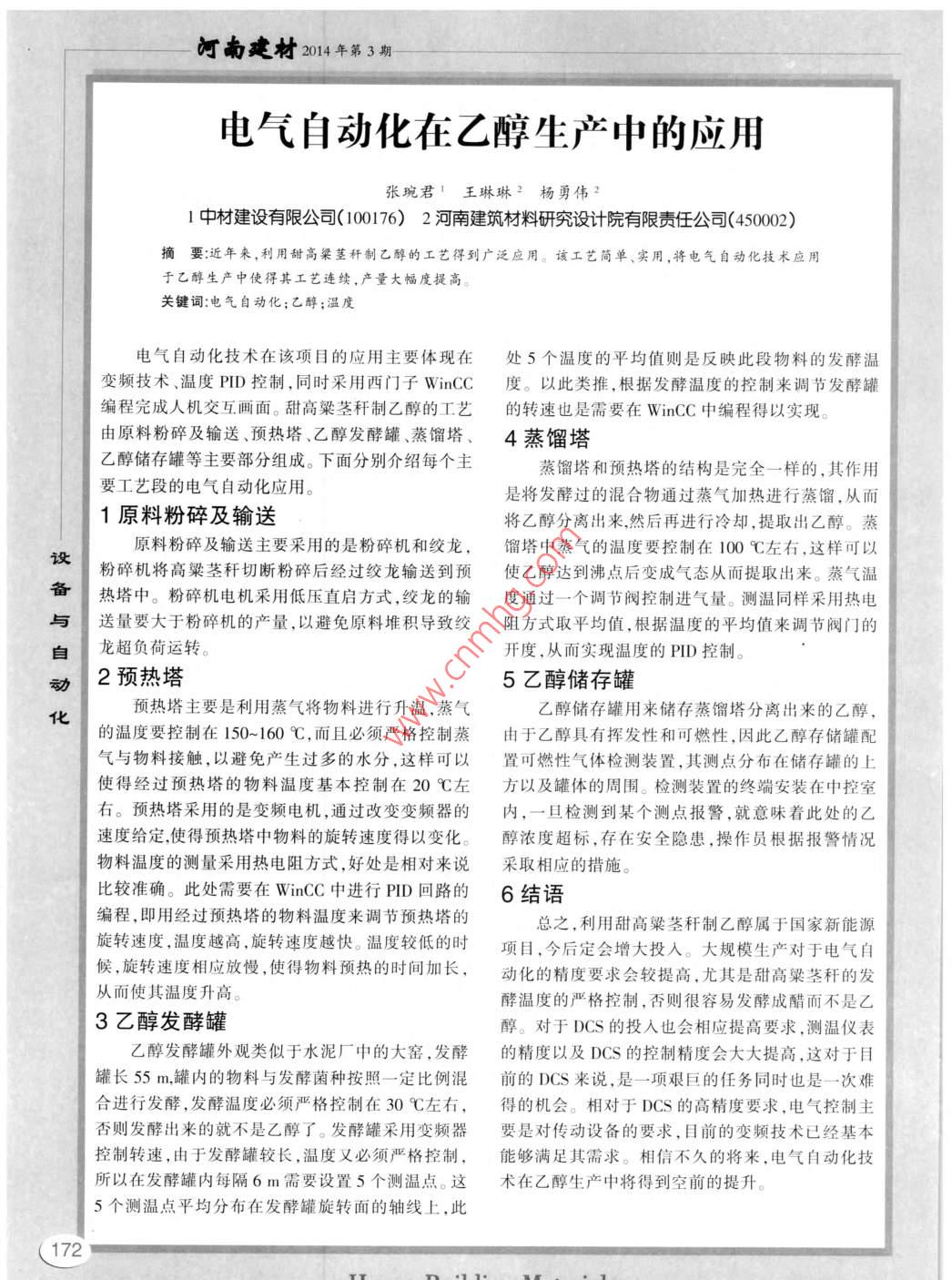 電氣自動(dòng)化在乙醇生產(chǎn)中的應(yīng)用
