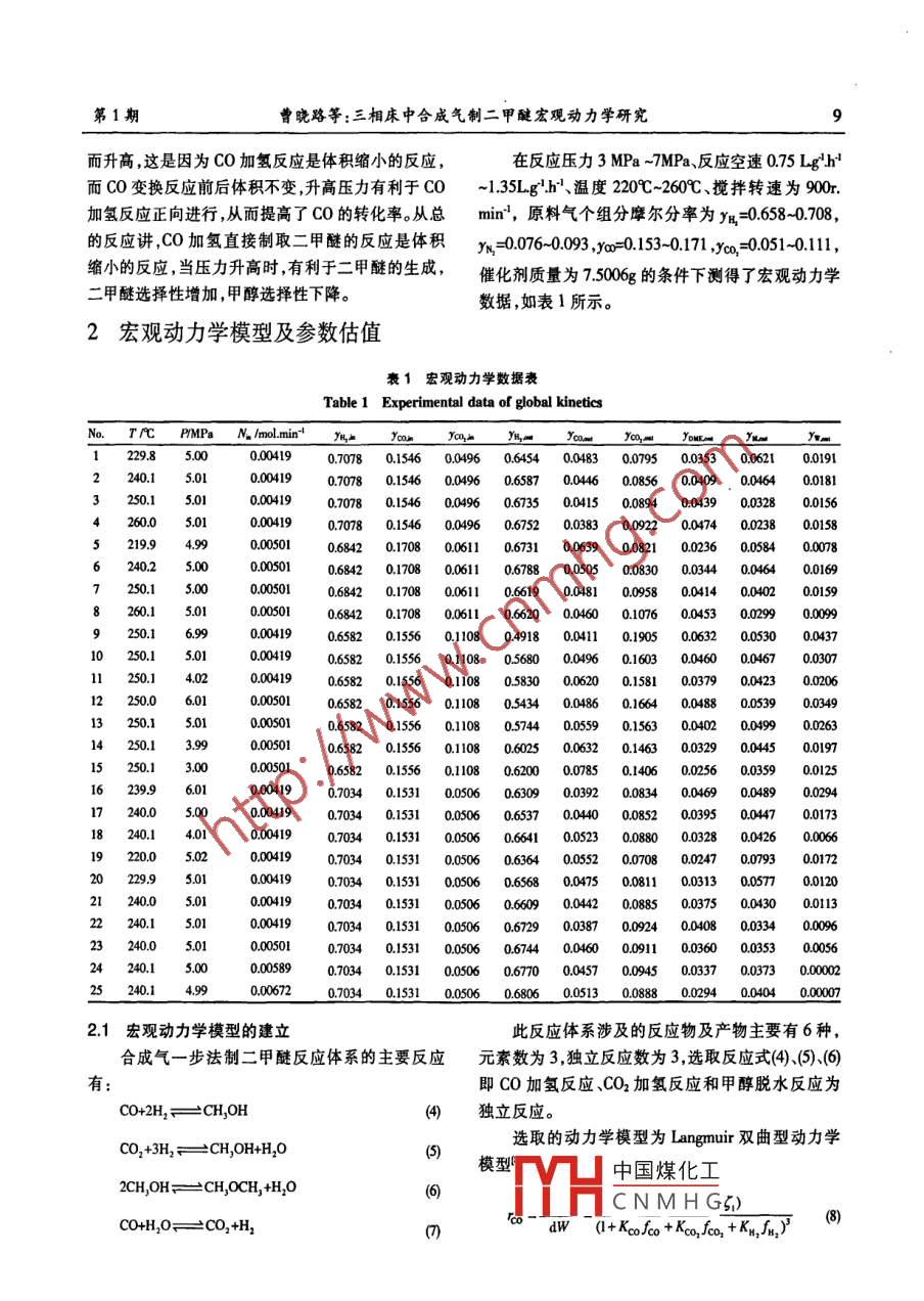 三相床中合成氣制二甲醚宏觀動(dòng)力學(xué)研究
