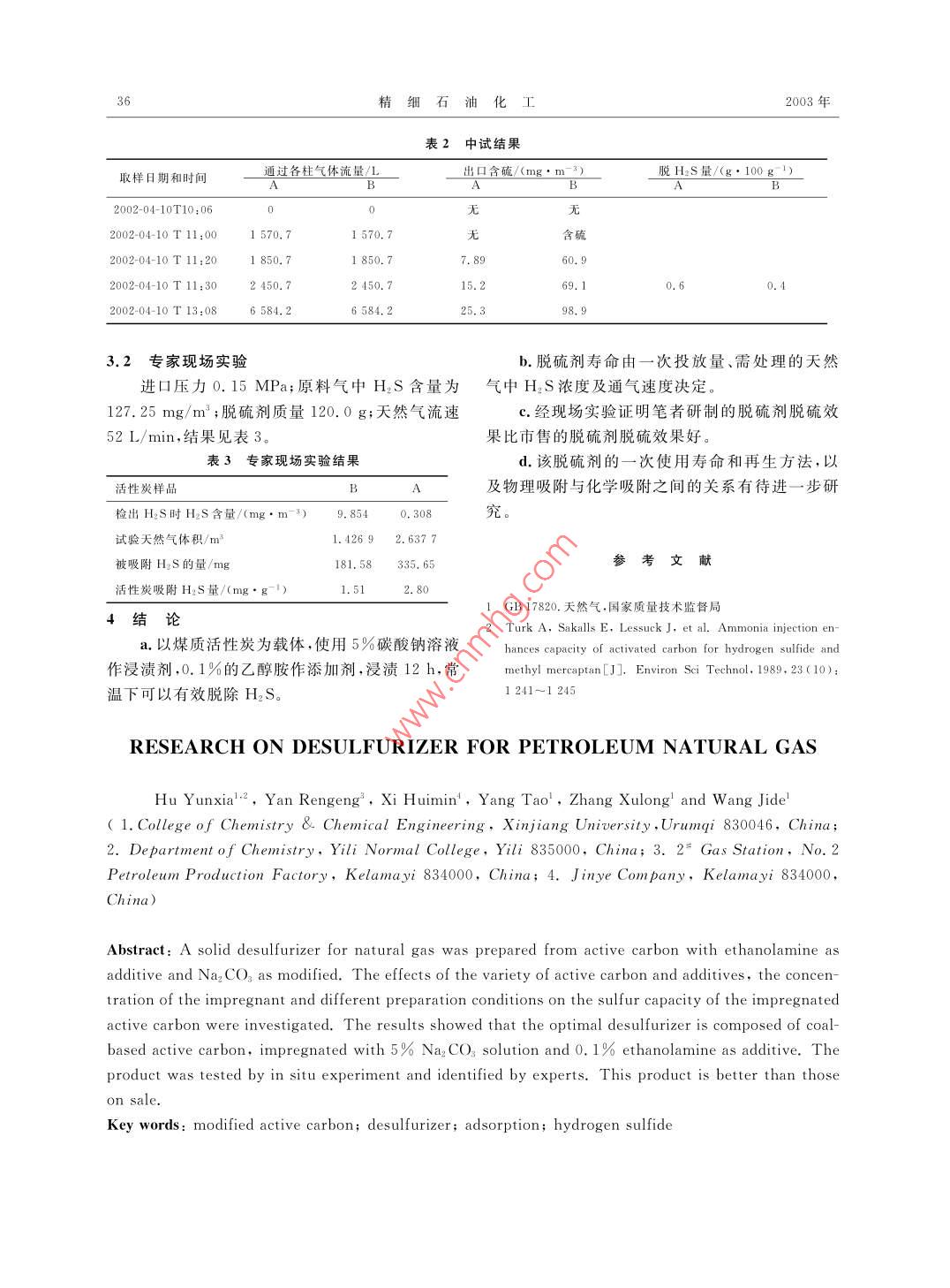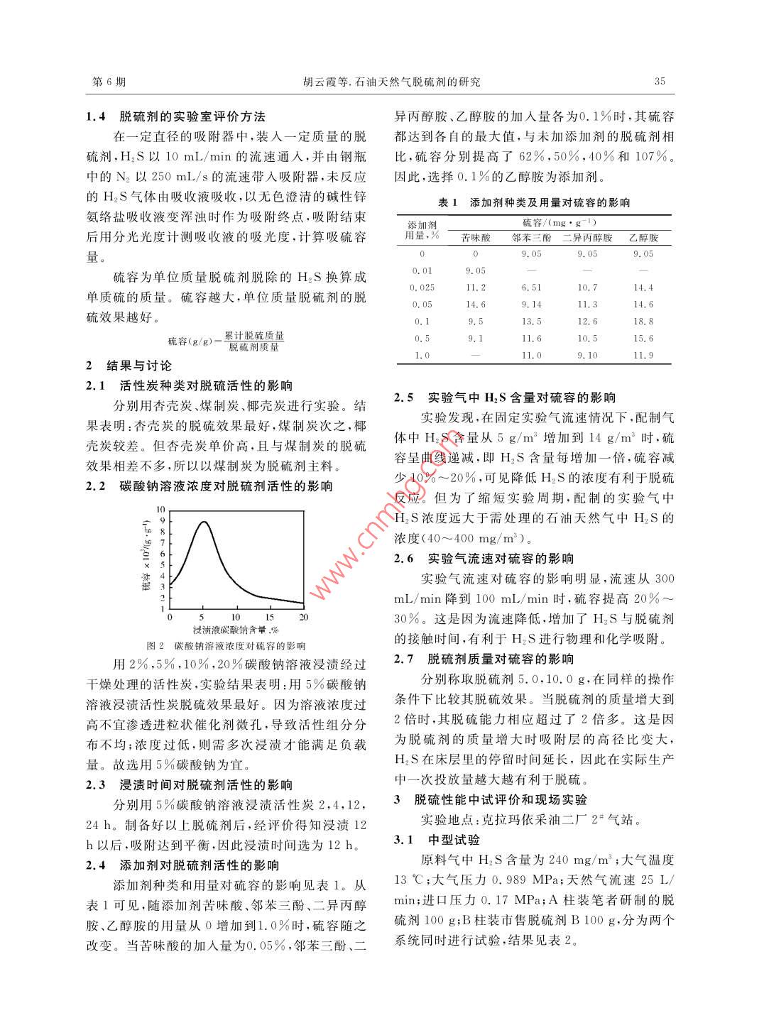 石油天然氣脫硫劑的研究