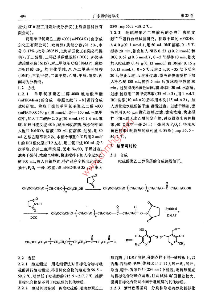 吡硫醇聚乙二醇前藥的合成與表征
