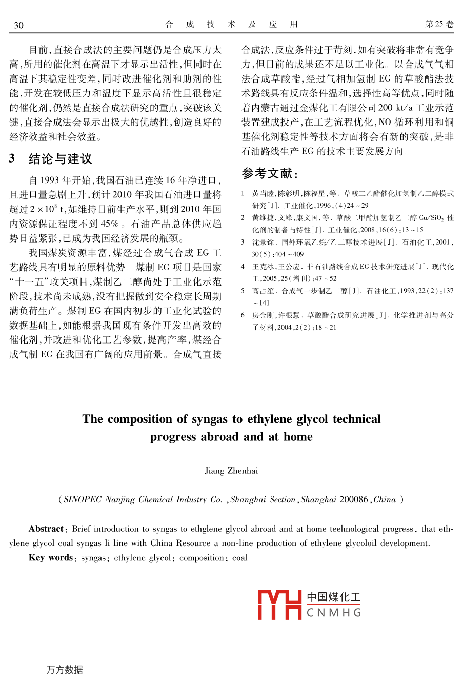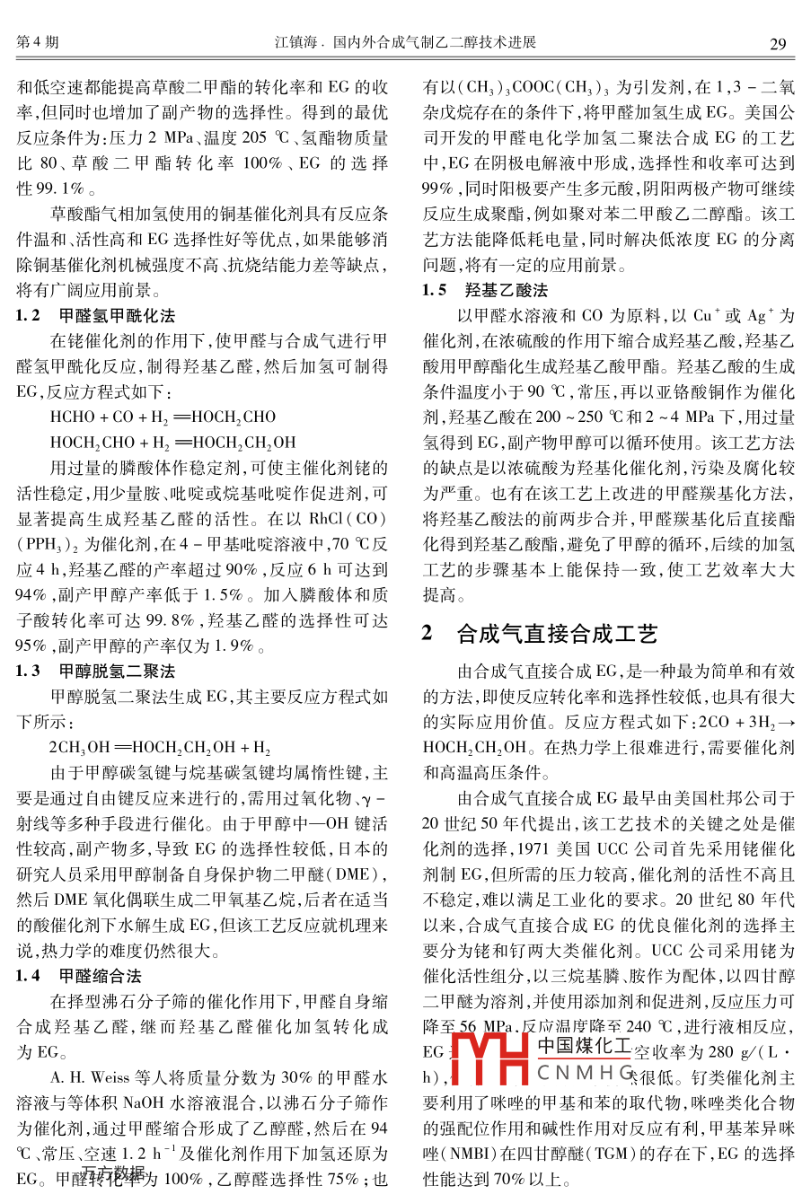國內(nèi)外合成氣制乙二醇技術(shù)進展