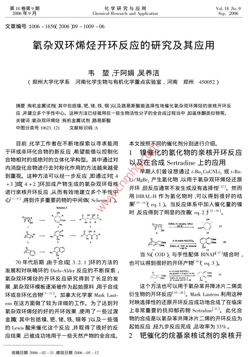 氧雜雙環(huán)烯烴開環(huán)反應(yīng)的研究及其應(yīng)用