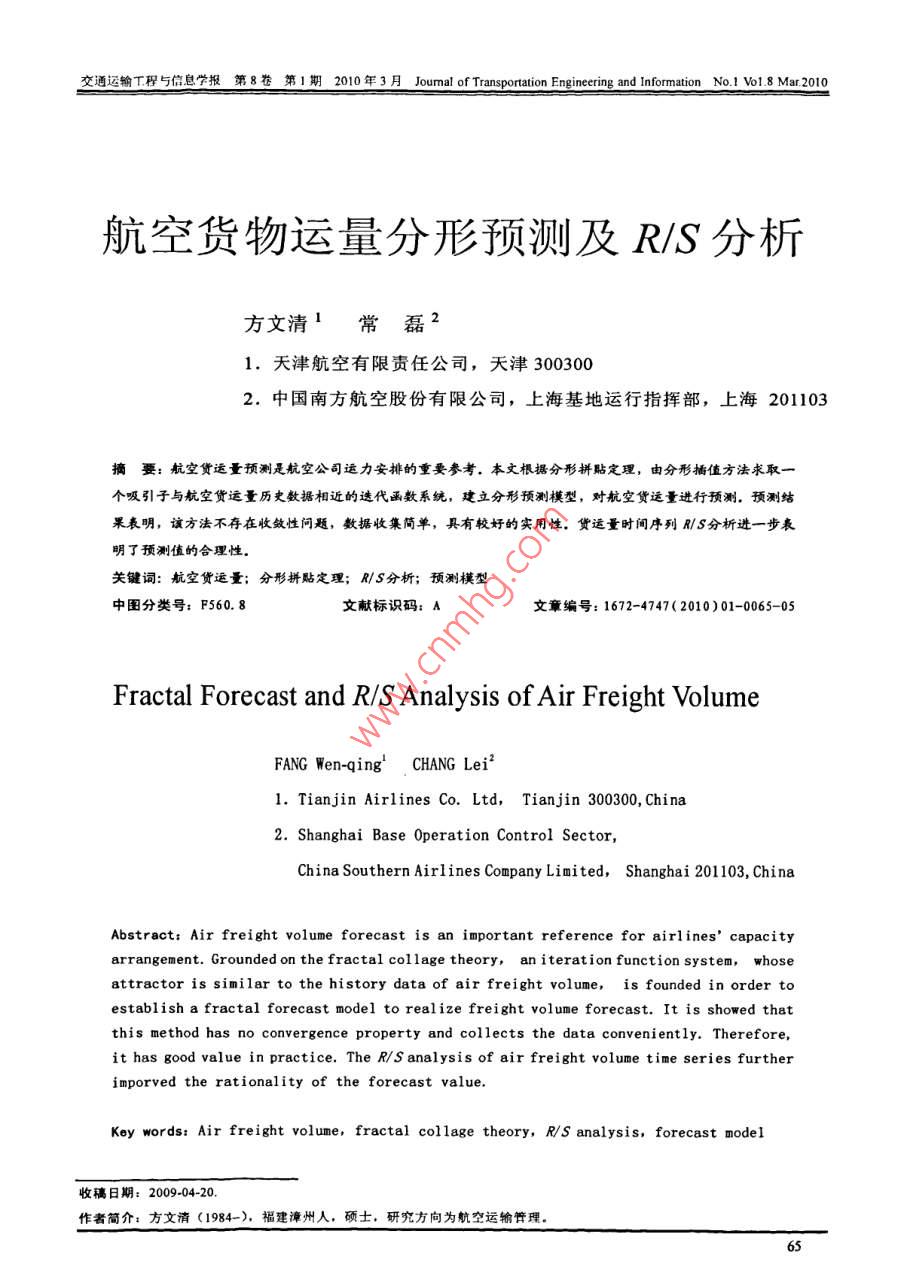 航空貨物運(yùn)量分形預(yù)測(cè)及R/S分析