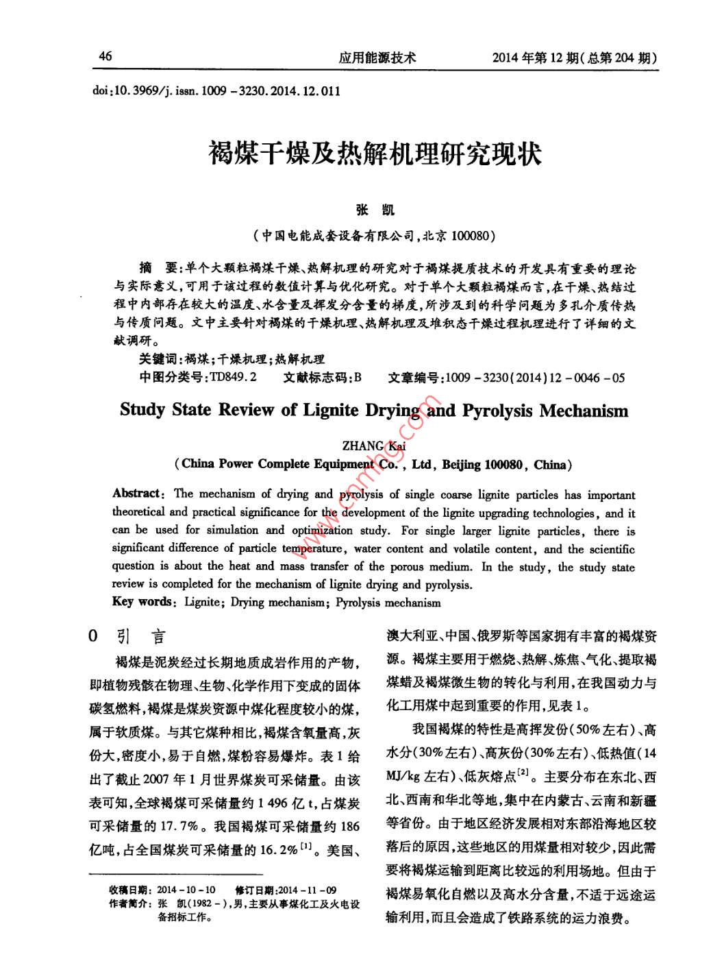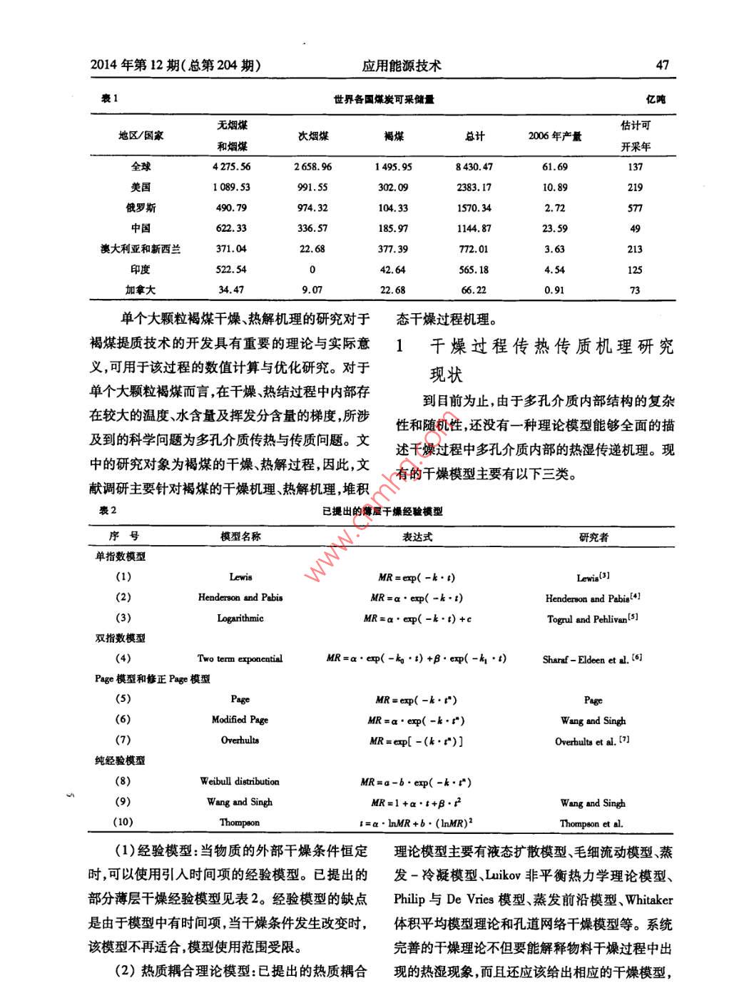褐煤干燥及熱解機(jī)理研究現(xiàn)狀
