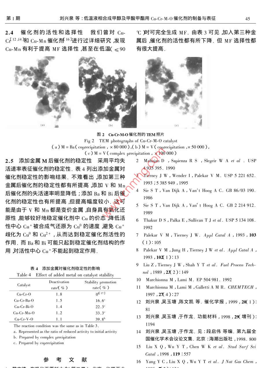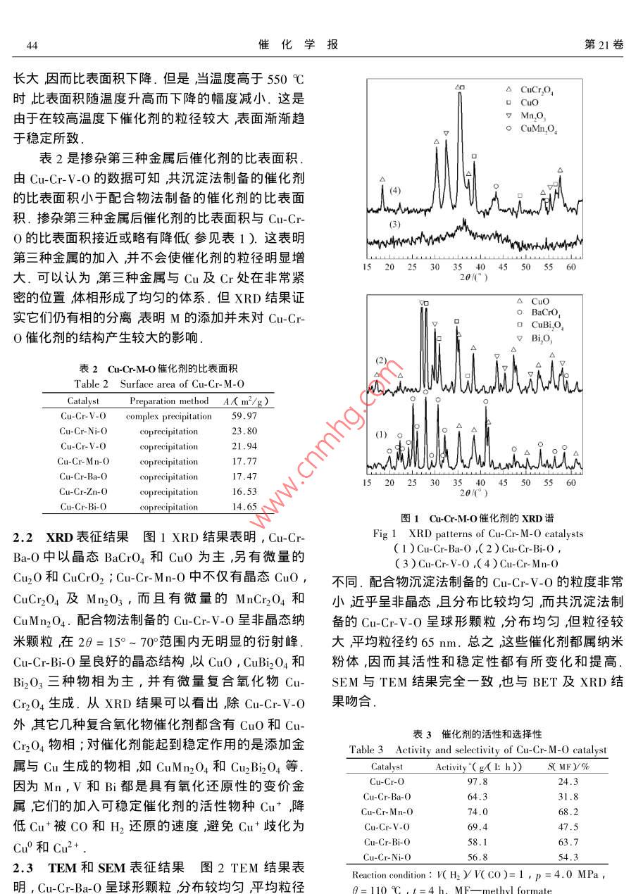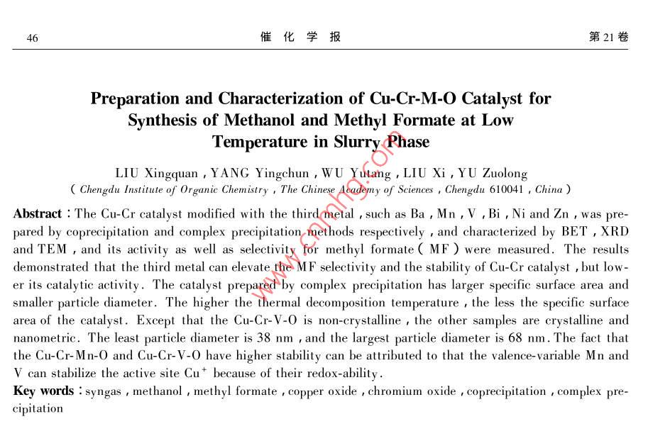 低溫液相合成甲醇及甲酸甲酯用Cu-Cr-M-O催化劑的制備與表征