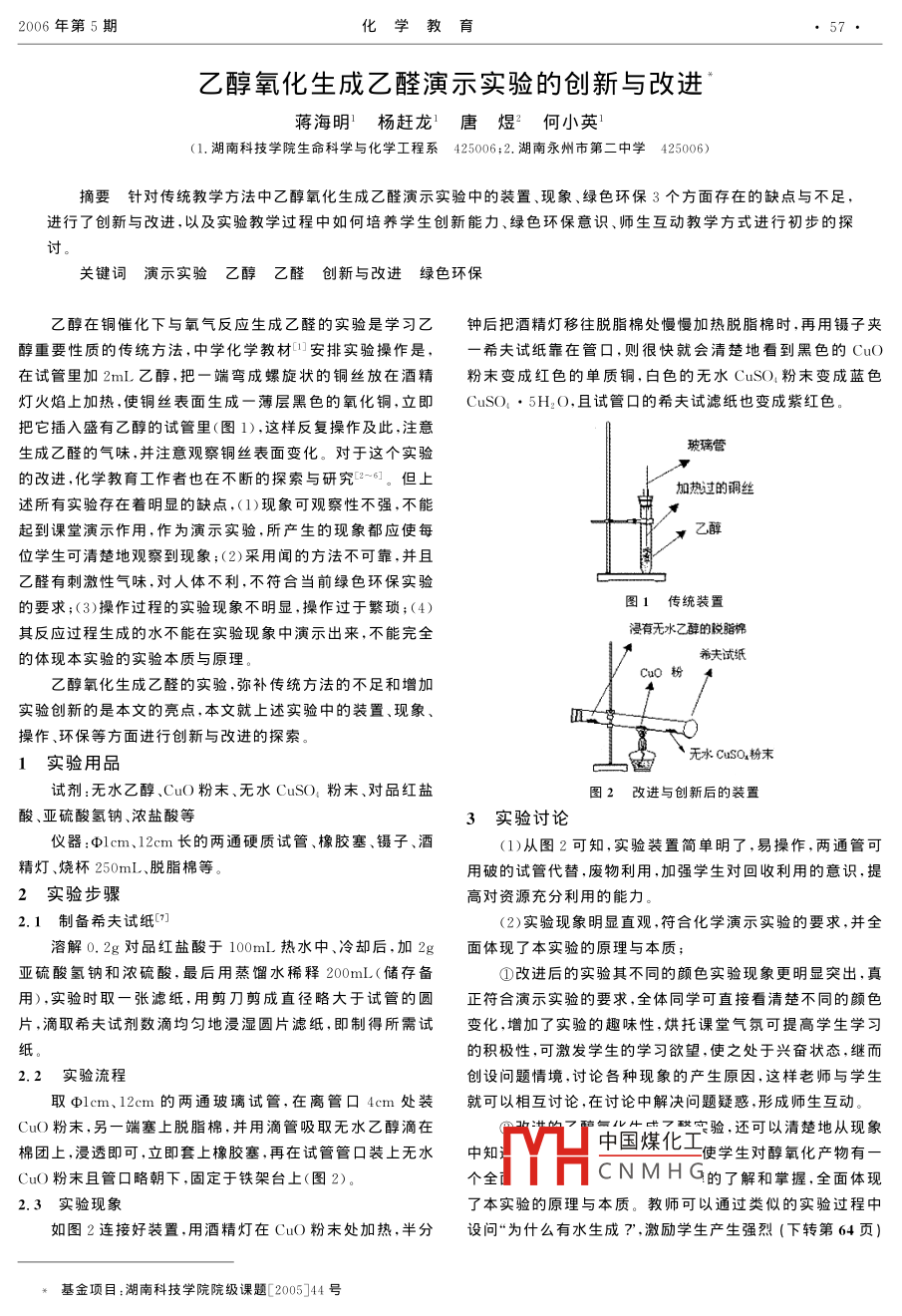 乙醇氧化生成乙醛演示實驗的創(chuàng)新與改進