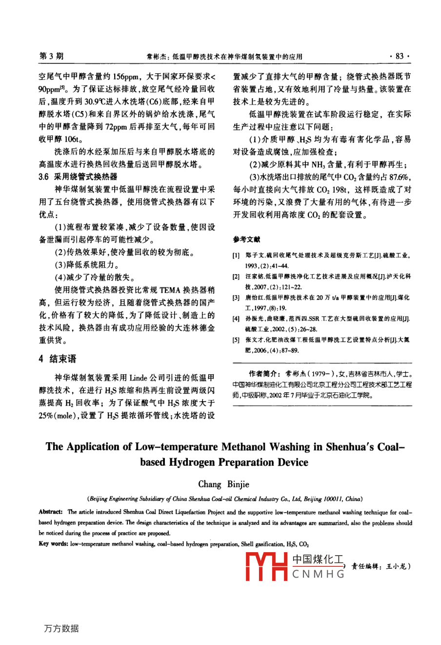低溫甲醇洗技術(shù)在神華煤制氫裝置中的應(yīng)用