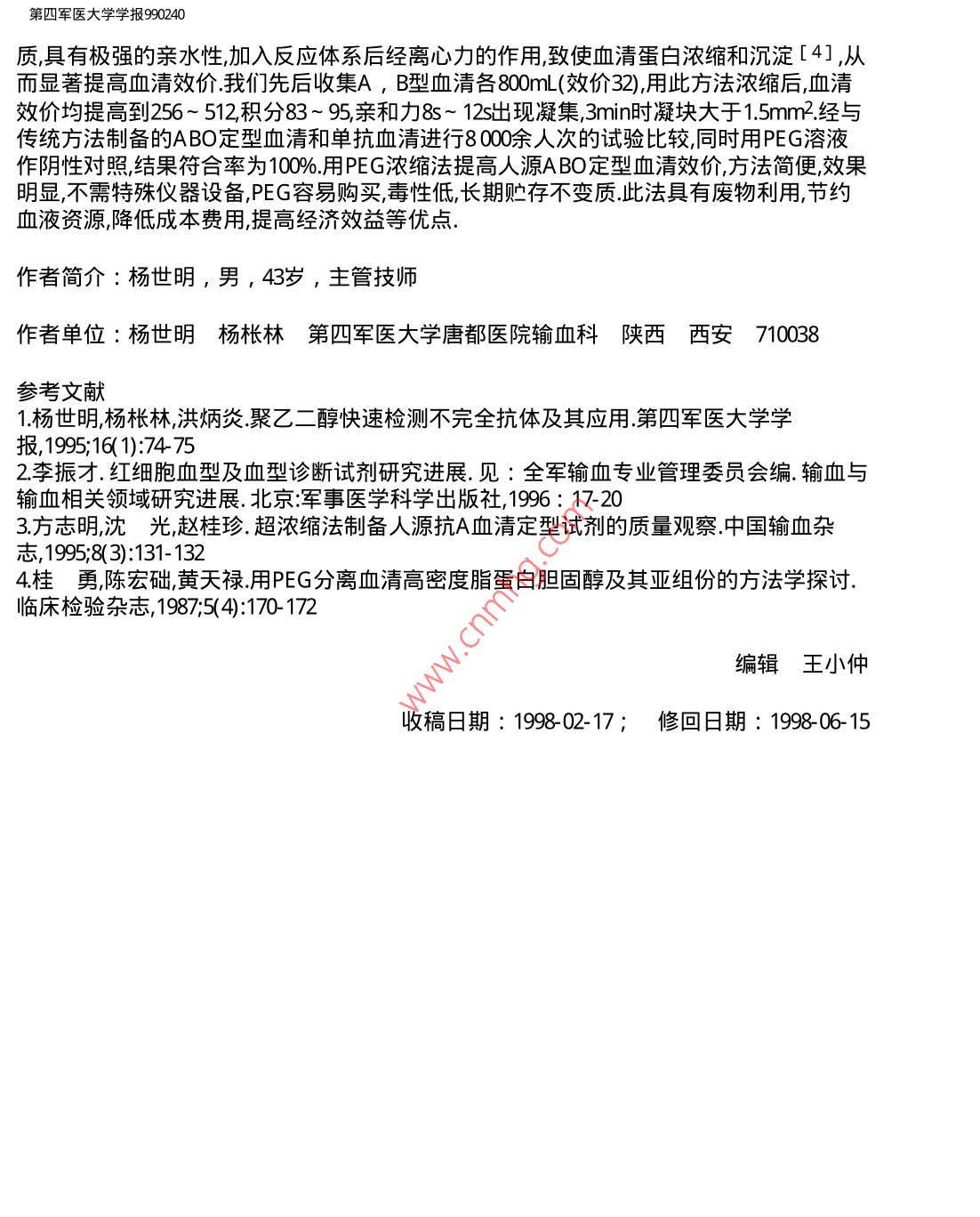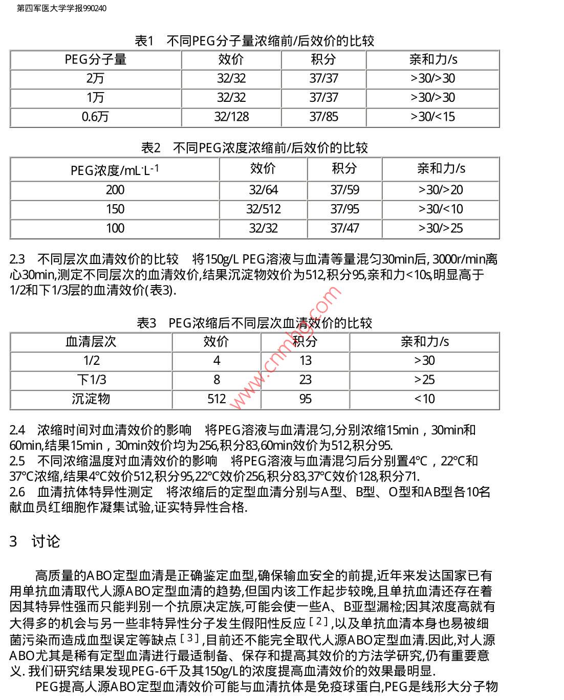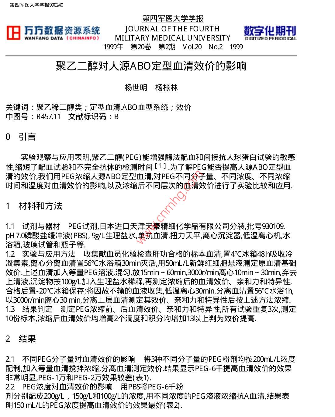 聚乙二醇對人源ABO定型血清效價(jià)的影響