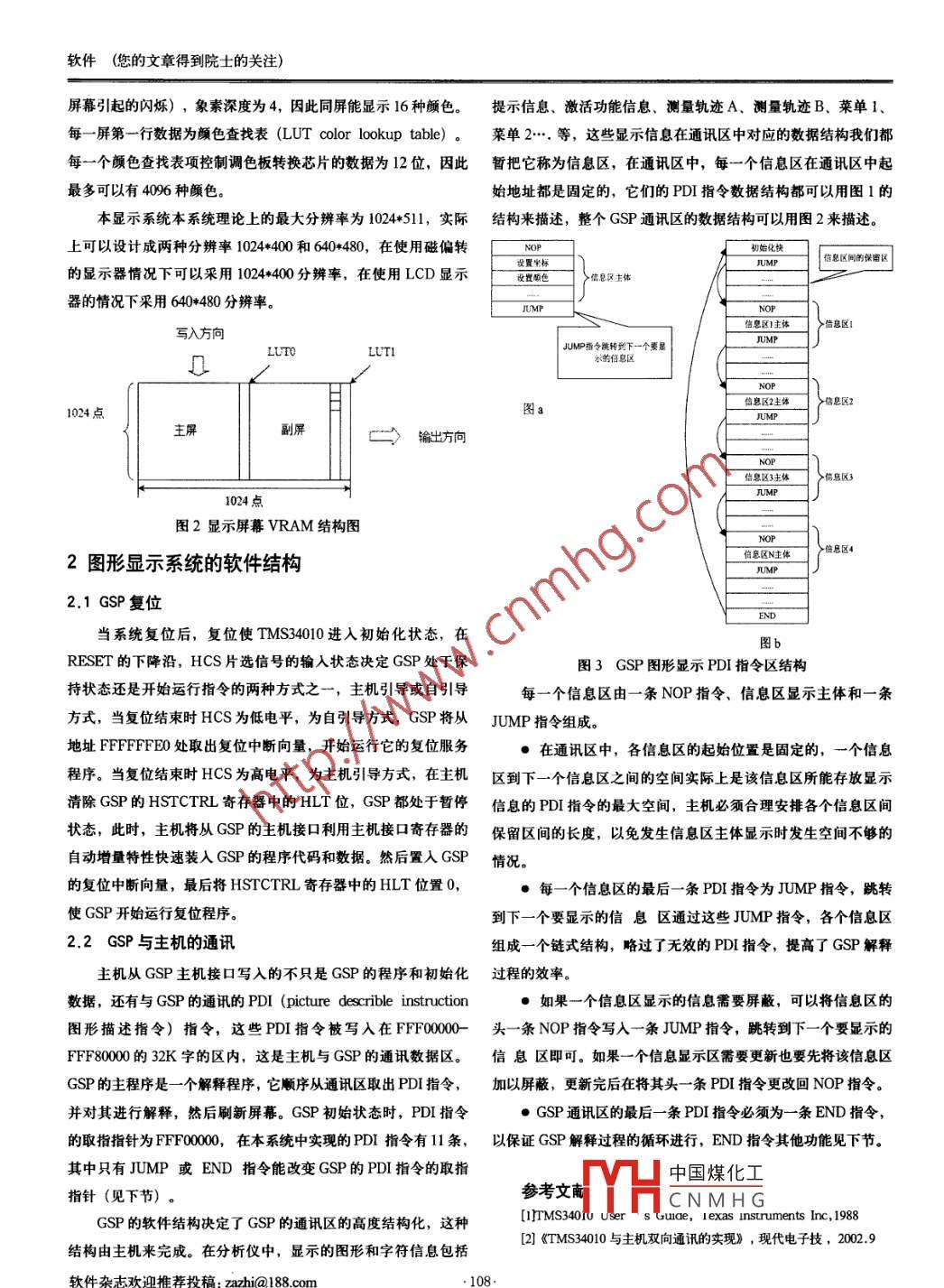 軟件2013年第34卷第3期SOFTWARE國(guó)際IT傳媒品牌智能分析儀顯示系統(tǒng)的分析與實(shí)現(xiàn)郭朗(成都職業(yè)技術(shù)學(xué)院,成都610041)摘要:本文深入分析了某一體化智能分析儀顯示系統(tǒng)的設(shè)計(jì)目的,并對(duì)顯示系統(tǒng)軟件和硬件工作原理進(jìn)行了分析,闡述其具體的設(shè)計(jì)原理及實(shí)現(xiàn)方案。關(guān)鍵詞:透明;象素深度;顏色查找表;自動(dòng)增量;清倉(cāng)中圖分類號(hào): TP23文獻(xiàn)標(biāo)識(shí)碼: ADOI: 10.3969/is.1003-6970.2013.03.032本文著錄格式: []郭朗.智能分析儀顯示系統(tǒng)的分析與實(shí)現(xiàn)0].軟件, 2013, 34(3): 107-108.The Analysis and Realization of the Display System of Intelligent AnalyzerGUO Lang(Chengdu Polytechnic , Chengdu 610041.China)[Abstract] This paper analyzing the goals of the integrated itelligent analyzer display system is designed, and the working principleof the system software and hardware display, the details and implementation of the design principles is analyzed.[Keywords ] transparent,pixel depth; color lookup tabl; autoincrement0引言1圖形顯示系統(tǒng)的硬件結(jié)構(gòu)在智能測(cè)量?jī)x器系統(tǒng)中,顯示輸出在人機(jī)交互中具有非常TMS34010(TMS34070)肇出重要的作用,為了降低儀器成本,減小儀器的重量體積,因此局部存儲(chǔ)器援口數(shù)字屏幕謂色板液品顯示器在本文中的智能分析儀系統(tǒng)選擇了LCD液晶顯示器作為系統(tǒng)的視類時(shí)序接口顯示輸出。在測(cè)量?jī)x器中,顯示系統(tǒng)是為了配合主機(jī)對(duì)測(cè)量結(jié)果進(jìn)行圖1顯示器系統(tǒng)結(jié)構(gòu)框圖顯示輸出,這是一個(gè)高效的數(shù)據(jù)處理過(guò)程,需要- - 個(gè)功能強(qiáng)勁如上圖所示GSP的系統(tǒng)結(jié)構(gòu)框圖包括3部分,主機(jī)接口、的顯示處理器來(lái)配合主機(jī)進(jìn)行并行處理來(lái)提高實(shí)時(shí)系統(tǒng)的效率。局部存 儲(chǔ)器接口及與視頻刷新有關(guān)的顯示器控制接口。來(lái)自數(shù)本系統(tǒng)采用的TI公司的TMS34010圖形系統(tǒng)處理器(Grahpics 字 屏幕的視頻數(shù)據(jù)輸出的顏色索引號(hào)經(jīng)過(guò)調(diào)色板芯片TMS34070System Procssor GSP) 作為顯示系統(tǒng)處理器,在顯示系統(tǒng)的的顏 色查找轉(zhuǎn)換成相應(yīng)的R, G, B三基色的顏色強(qiáng)度,并經(jīng)過(guò)主要設(shè)計(jì)工作上是如何解決和LCD顯示器接口的問(wèn)題。在顯DAC 轉(zhuǎn)換成相應(yīng)的顏色信號(hào)輸出。在實(shí)際使用中使用EPLD代示硬件涉及中采用數(shù)字接口方案,具體電路上來(lái)說(shuō)上,是將與替 TMS34070,去掉DAC,將顏色查找表的R. G、B數(shù)字?jǐn)?shù)據(jù)TMS34010芯片配套系統(tǒng)(Color platte) 中完成調(diào)色板功能的直 接輸出到LCD. HSYNC和VSYNC都可以用原信號(hào),數(shù)據(jù)TMS34070芯片用EPLD替換掉,直接與LCD接口。有效(DEN)可以用視頻復(fù)合消隱信號(hào)來(lái)代替。系統(tǒng)顯示系統(tǒng)在軟件上的工作主要是合理地設(shè)計(jì)顯示屏幕、控制視頻時(shí)由 16 片VRAM在物理上組成-一個(gè)4*4的方陣結(jié)構(gòu),數(shù)據(jù)從橫序和并編寫正確的軟件的繪圖指令,使之與現(xiàn)在采用的LCD的方向?qū)懭耄?從縱方向串行輸出進(jìn)行屏幕刷新。在每一個(gè)VCLK液晶顯示器的640*480的分辨率相匹配。這牽涉到許多方面。包周期同時(shí)輸 出4個(gè)象素。括主機(jī)對(duì)GSP寄存器初始化,對(duì)顏色查找表初始化,重新設(shè)計(jì)在與LCD接口的顯示系統(tǒng)中,合理地安排數(shù)字屏幕的大小與GSP屏幕坐標(biāo)相關(guān)的PDI指令、字符顯示及設(shè)置顯示視頻寄和輸 出是十分重要的。軟件實(shí)際設(shè)計(jì)中采用640+*480分辨率,并存器時(shí)序使之與具體的LCD視頻時(shí)序的要求相匹配等。要進(jìn)行使用兩屏 顯示數(shù)據(jù)(主屏與副屏)交替顯示進(jìn)行顯示刷新(當(dāng)前軟件設(shè)計(jì)需要對(duì)顯示系統(tǒng)的硬件有一個(gè)清楚的認(rèn)識(shí)。繪圖的屏幕和當(dāng)前中國(guó)煤化工避免繪圖時(shí)清除MHCNMH G .作者簡(jiǎn)介:郭朗(1972-) ,男,湖北安陸人,講師,主要研究方向:軟件技術(shù),網(wǎng)絡(luò)技術(shù)、信息安全.. 107.軟件雜志歡迎推薦投稿: htp://ww.ccomsof.com/軟件(您的文章得到院 士的關(guān)注)屏幕引起的閃爍),象素深度為4,因此同屏能顯示16種顏色。提示信息、激活功能信息、測(cè)量軌跡A、測(cè)量軌跡B.菜單1.每一屏第一行數(shù)據(jù)為顏色查找表(LUT color lookup table)。菜單 2..等,這些顯示信息在通訊區(qū)中對(duì)應(yīng)的數(shù)據(jù)結(jié)構(gòu)我們都每一個(gè)顏色查找表項(xiàng)控制調(diào)色板轉(zhuǎn)換芯片的數(shù)據(jù)為12位,因此暫把它稱為信息區(qū), 在通訊區(qū)中,每一個(gè)信息區(qū)在通訊區(qū)中起最多可以有4096種顏色。始地址都是固定的,它們的PDI指令數(shù)據(jù)結(jié)構(gòu)都可以用圖1的本顯示系統(tǒng)本系統(tǒng)理論上的最大分辨率為1024*511,實(shí)際結(jié)構(gòu)來(lái)描述,整個(gè)GSP通訊區(qū)的數(shù)據(jù)結(jié)構(gòu)可以用圖2來(lái)描述。上可以設(shè)計(jì)成兩種分辨率1024*400和640*480,在使用磁偏轉(zhuǎn)NOP初始化快的顯示器情況下可以采用1024*400分辨率,在使用LCD顯示設(shè)置坐標(biāo)>佛息區(qū)主體UMP信息
