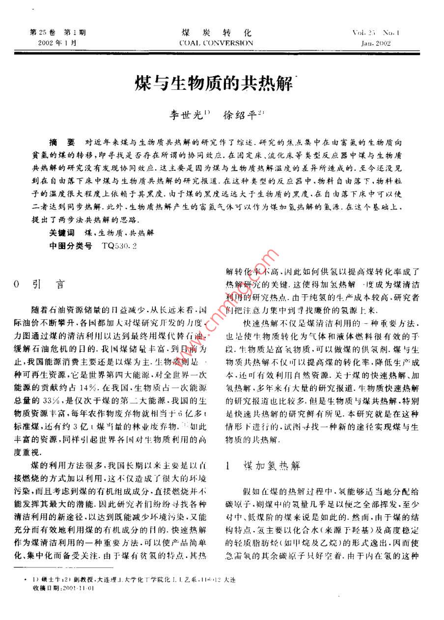 煤與生物質(zhì)的共熱解