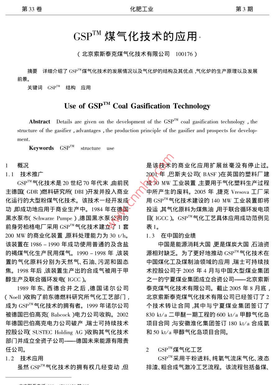 GSPTM煤氣化技術(shù)的應(yīng)用