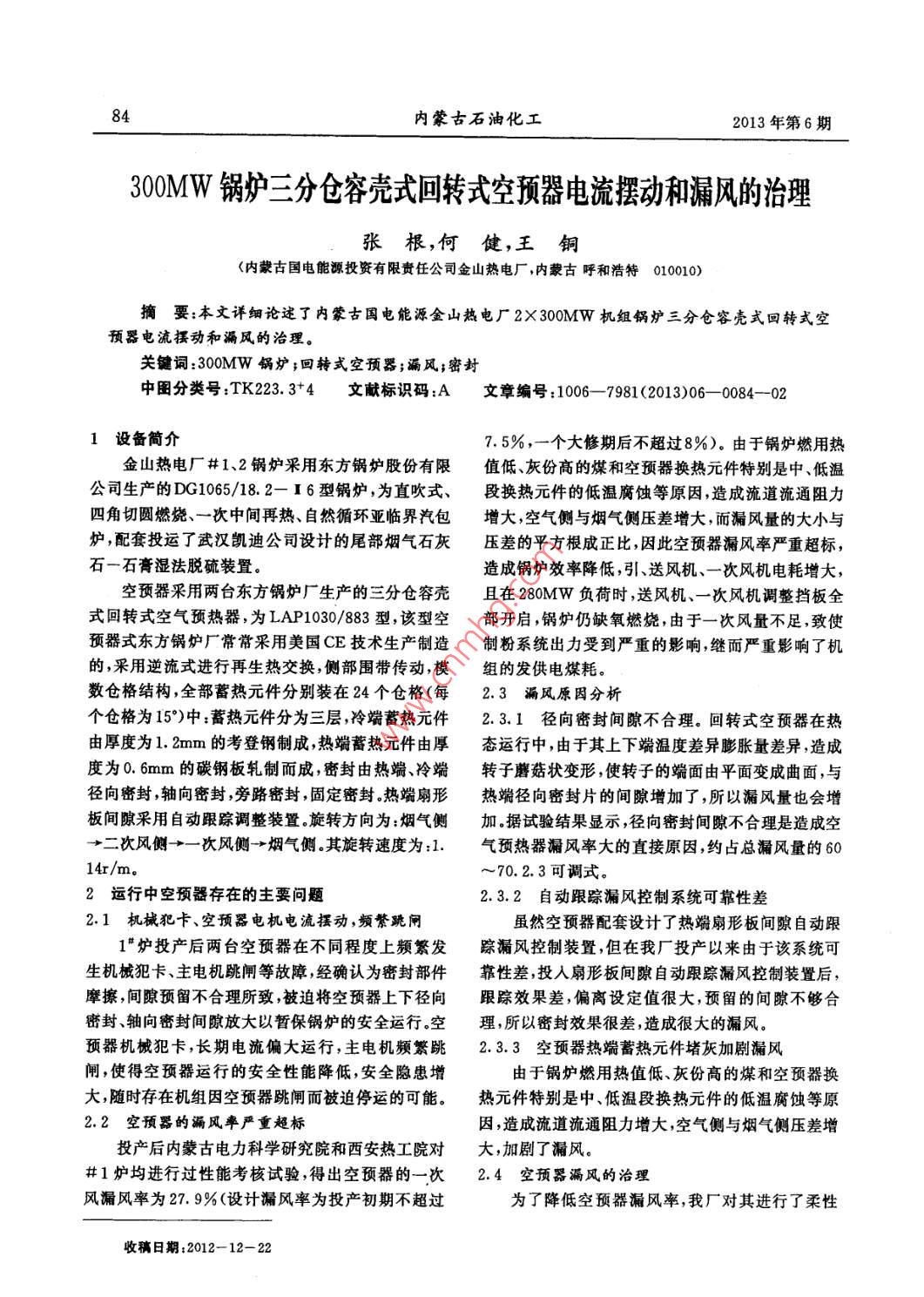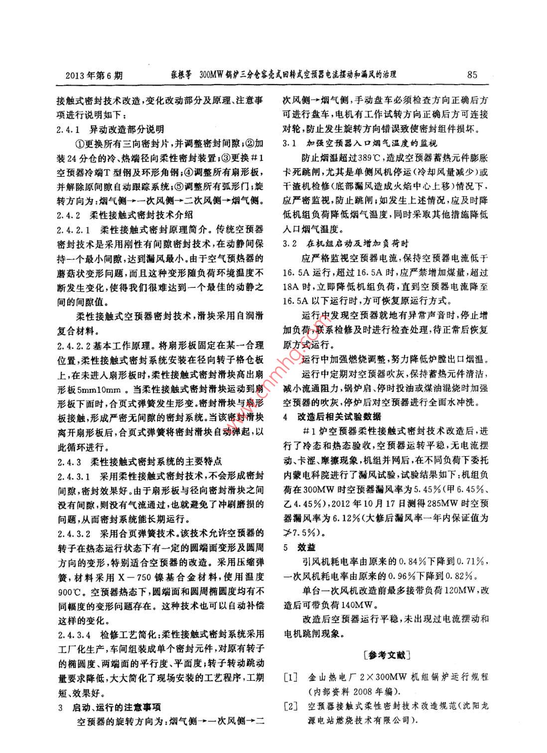 300MW鍋爐三分倉容殼式回轉(zhuǎn)式空預(yù)器電流擺動和漏風(fēng)的治理