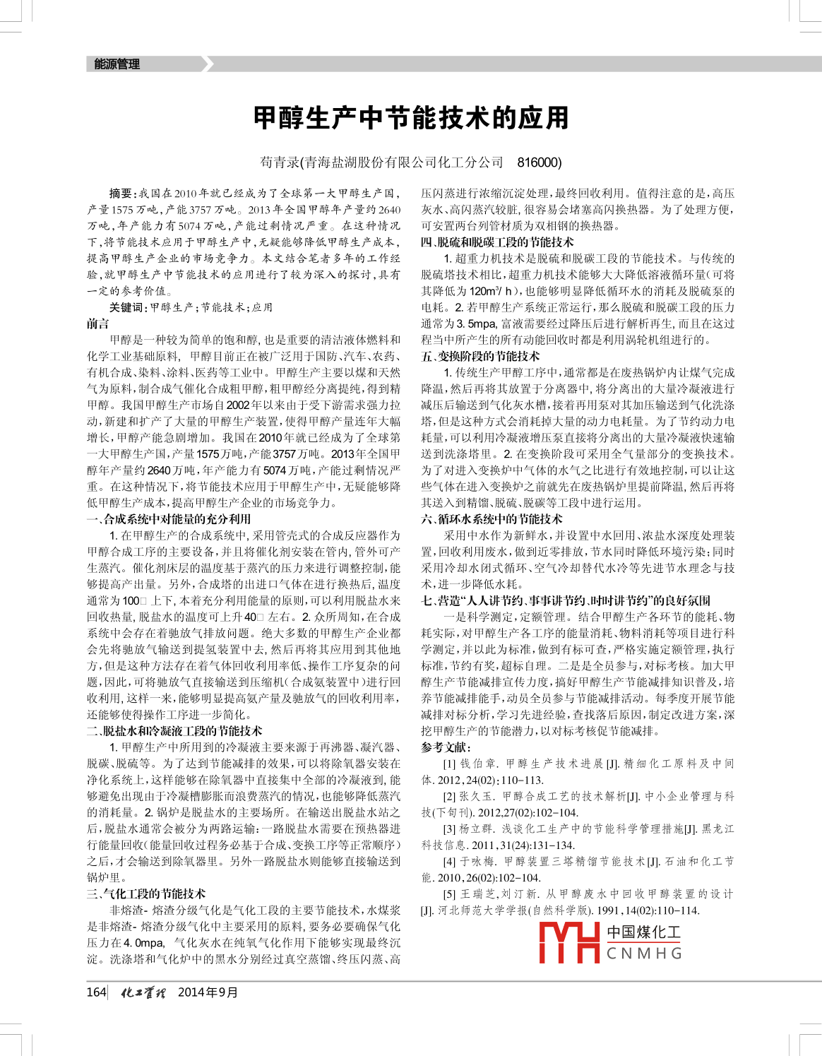 甲醇生產(chǎn)中節(jié)能技術(shù)的應(yīng)用