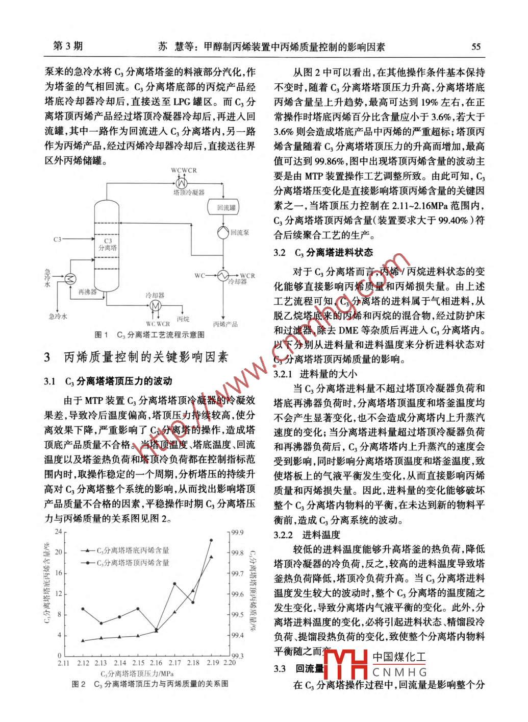 甲醇制丙烯裝置中丙烯質(zhì)量控制的影響因素