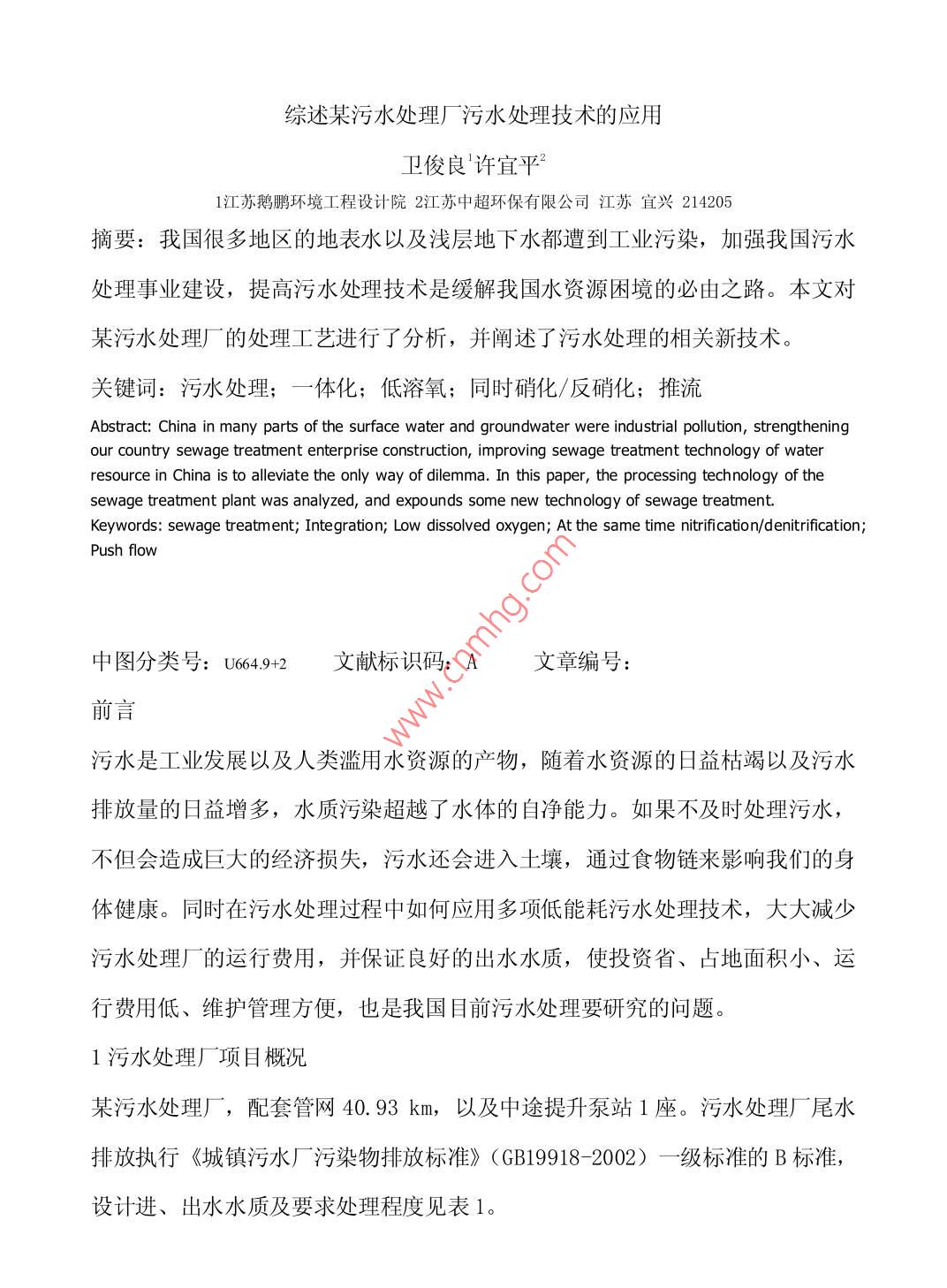 綜述某污水處理廠污水處理技術(shù)的應(yīng)用