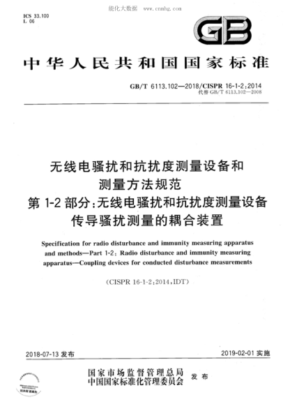 GB/T 6113.102-2018 無(wú)線電騷擾和抗擾度測(cè)量設(shè)備和測(cè)量方法規(guī)范 第1-2部分:無(wú)線電騷擾和抗擾度測(cè)量設(shè)備 傳導(dǎo)騷擾測(cè)量的耦合裝置 Specification for radio disturbance and immunity measuring apparatus and methods-Part 1-2: Radio disturbance and immunity measuring apparatus-Coupling devices for conducted disturban