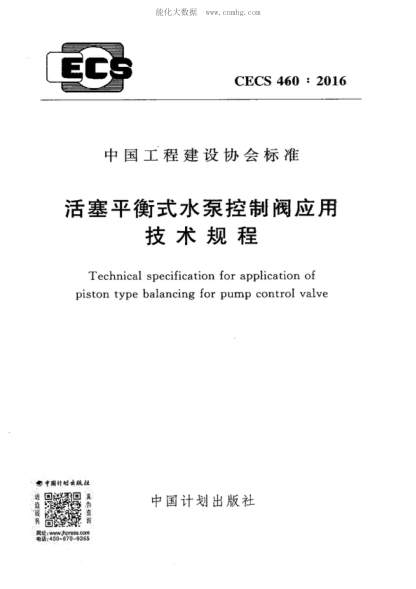 CECS 460-2016 活塞平衡式水泵控制閥應(yīng)用技術(shù)規(guī)程 Technical specification for application of piston type balancing for pump control valve