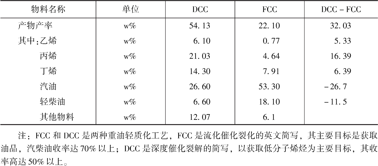 表2 DCC與FCC裝置主要產(chǎn)品產(chǎn)率對比