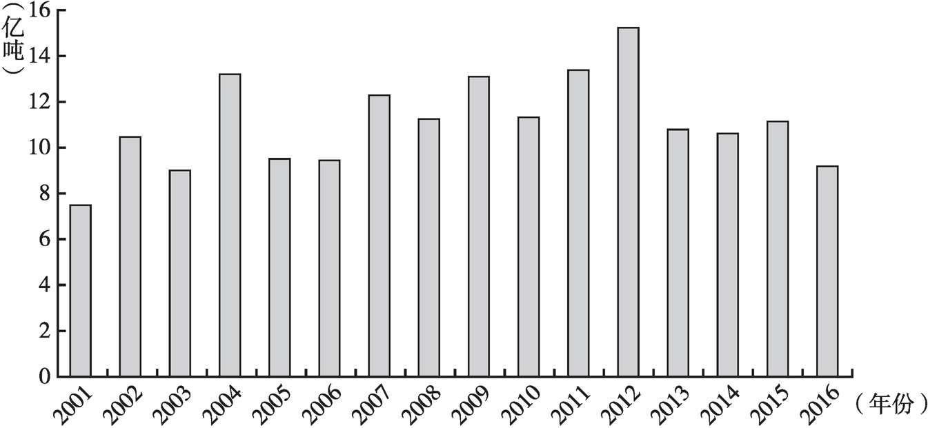 圖5 2001~2016年全國新增石油探明地質(zhì)儲量