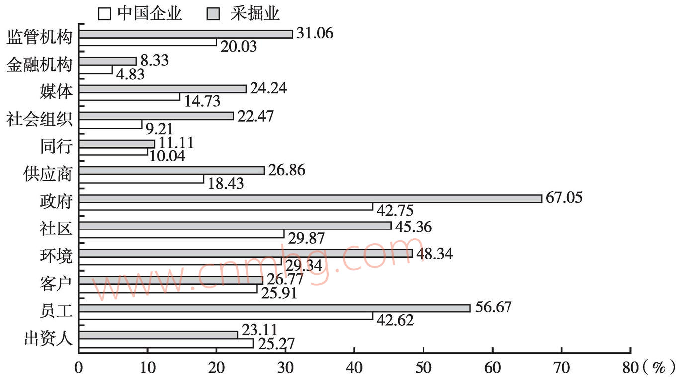 圖9 采掘業(yè)與中國企業(yè)報告利益相關方指標得分率