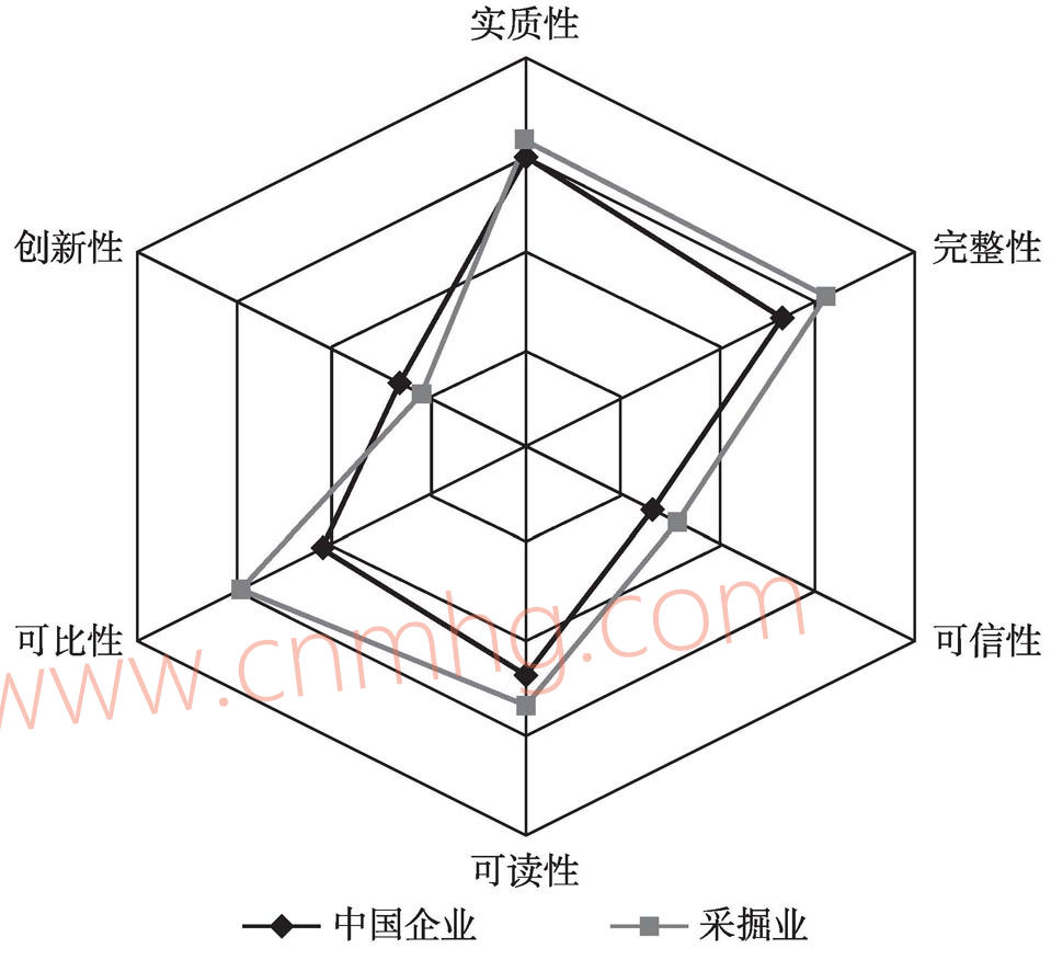 圖10 采掘業(yè)與中國企業(yè)報告質量對比