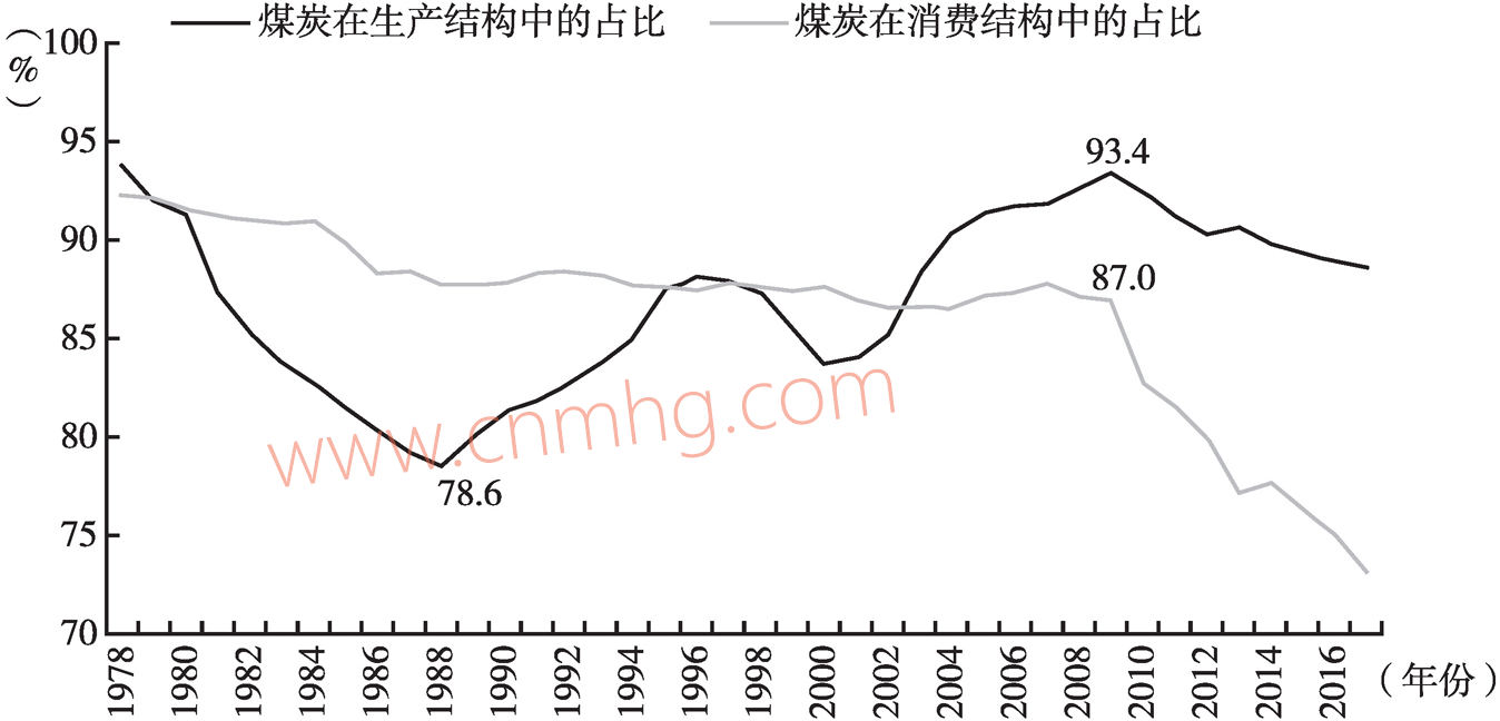 (三)煤炭在能源結(jié)構(gòu)中占比呈下降態(tài)勢