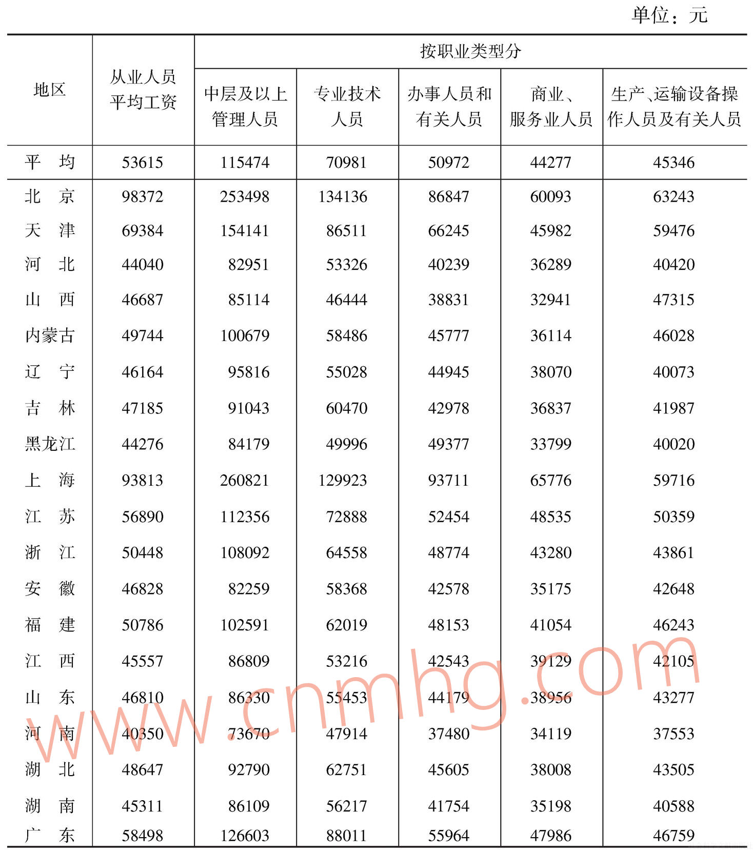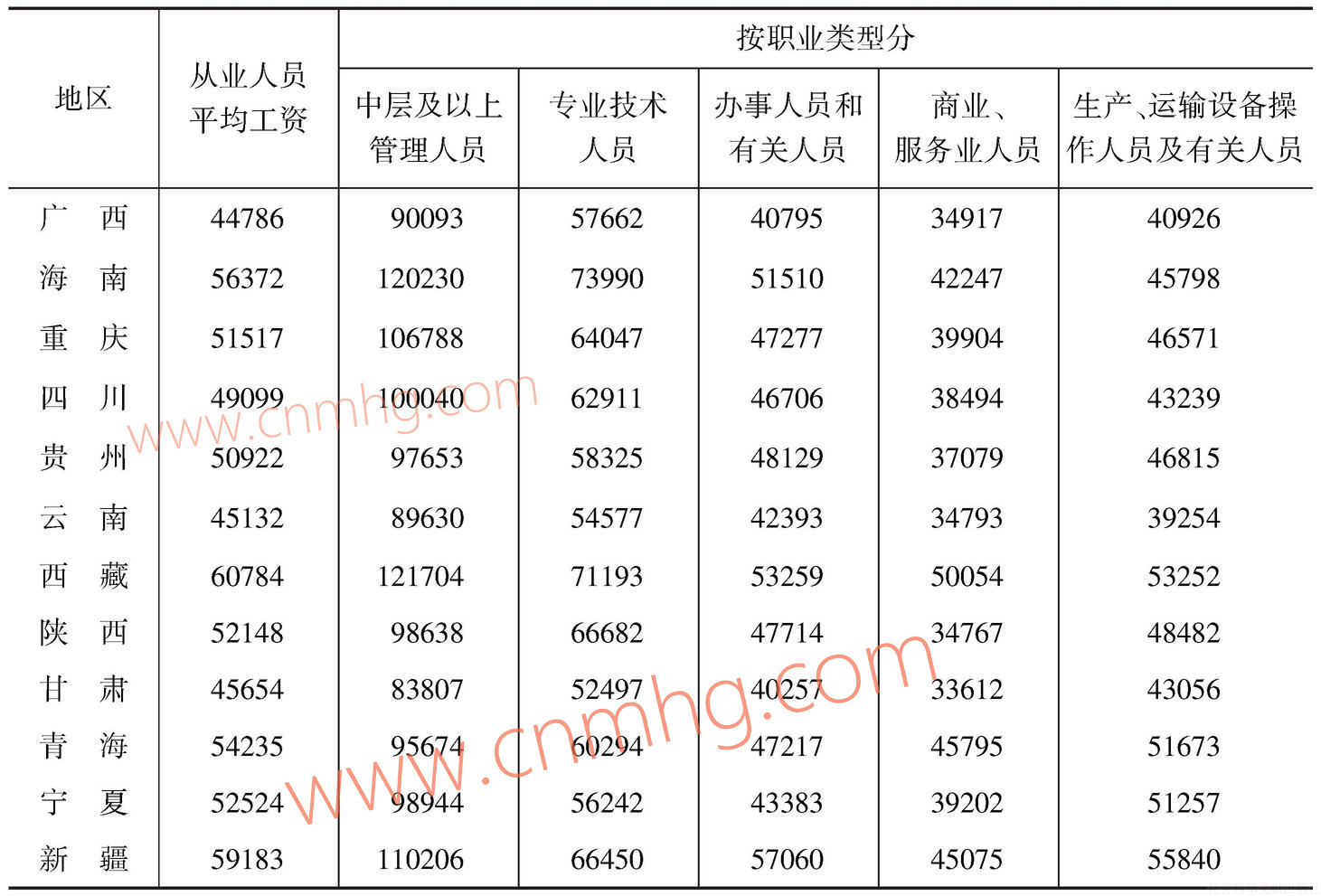 表6-4 分區(qū)域非私營(yíng)單位平均工資