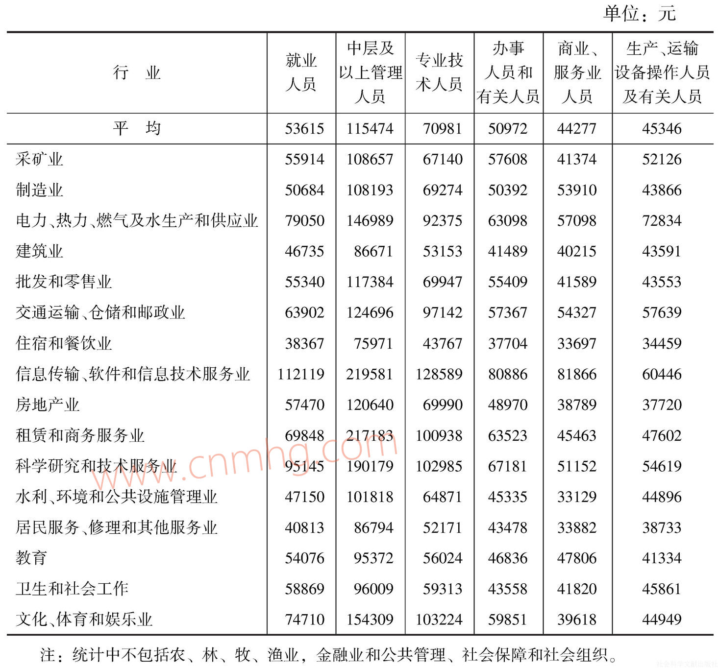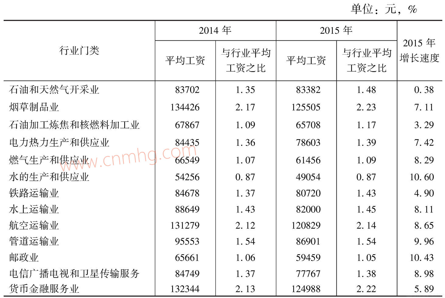 (一)行業(yè)間工資差距依然顯著,行業(yè)門(mén)類(lèi)排名沒(méi)有變化