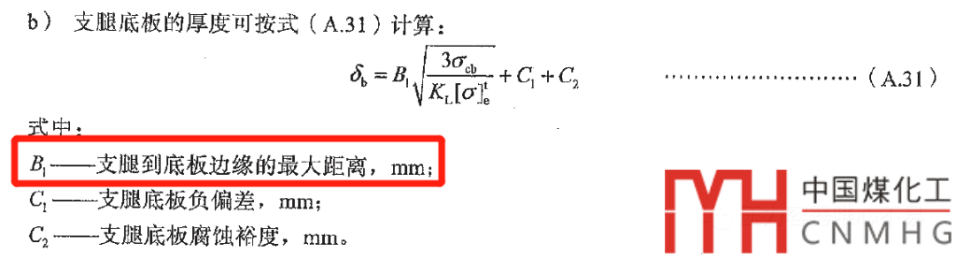 在Pressure vessel design manual一書以及NB/T 47065-2018中,對(duì)于支腿底板的計(jì)算公式基本相同。