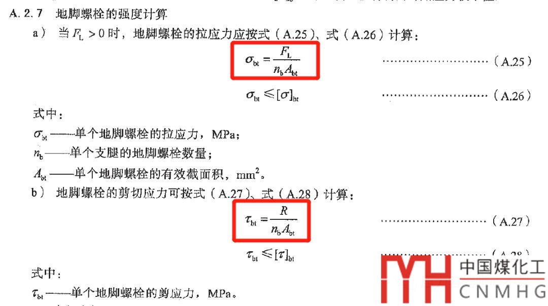 螺栓拉應(yīng)力=((-W/Nleg)+(Mleg/(Nlegm*Rn)))/Abolt)
