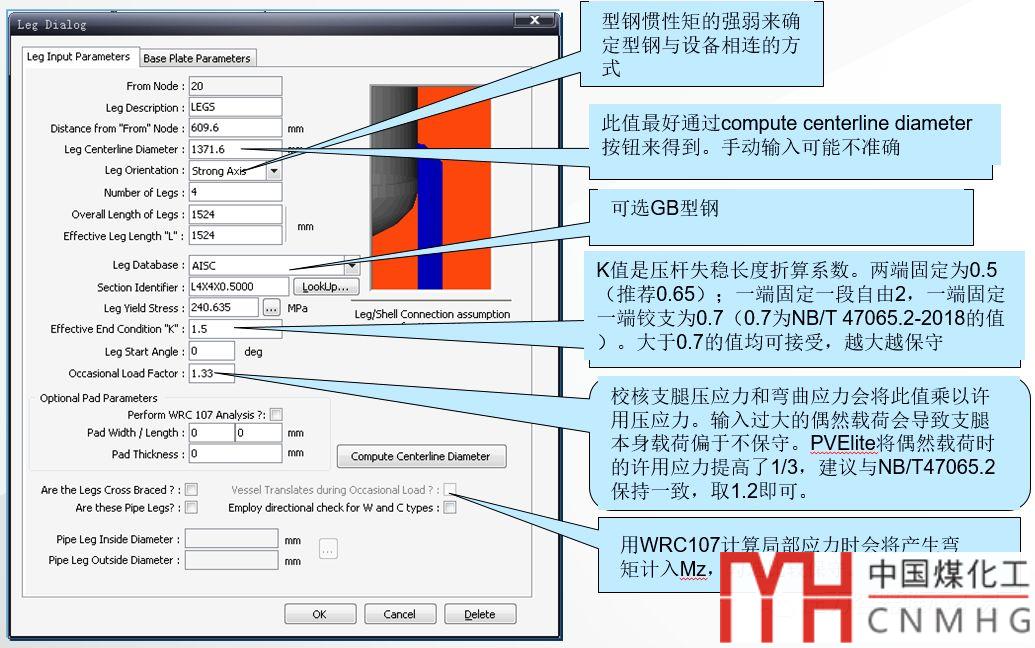 在做ASME設(shè)計(jì)時(shí),經(jīng)常按照國(guó)標(biāo)的標(biāo)準(zhǔn)支腿尺寸來(lái)設(shè)計(jì),然后再在PVElite中校核計(jì)算。