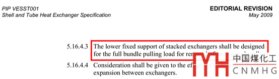 在PIP中,對于重疊式換熱器要求核算抽芯對于下部固定鞍座的影響。